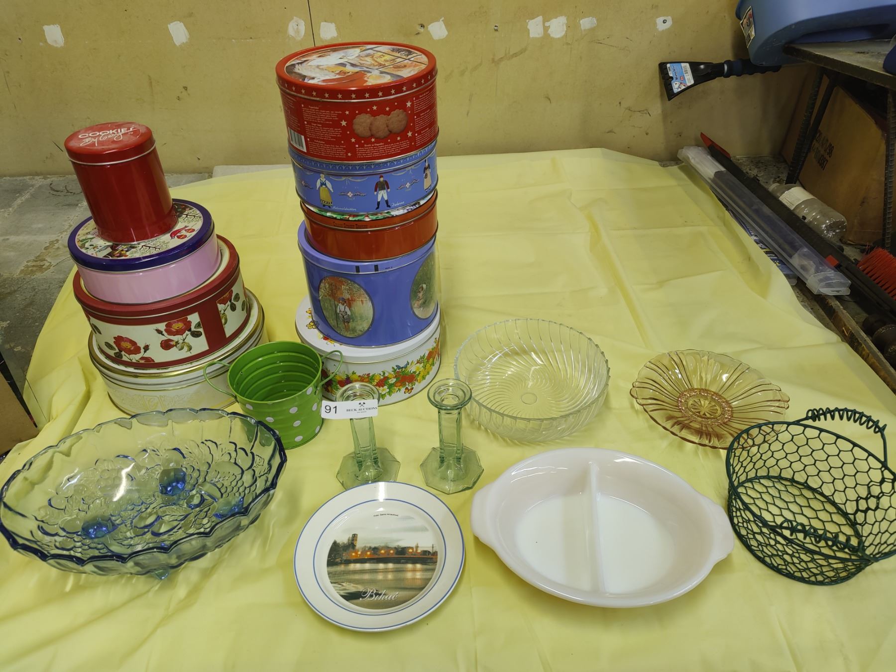 Decorative Bowls, Serving Dishes, and Assorted Tins