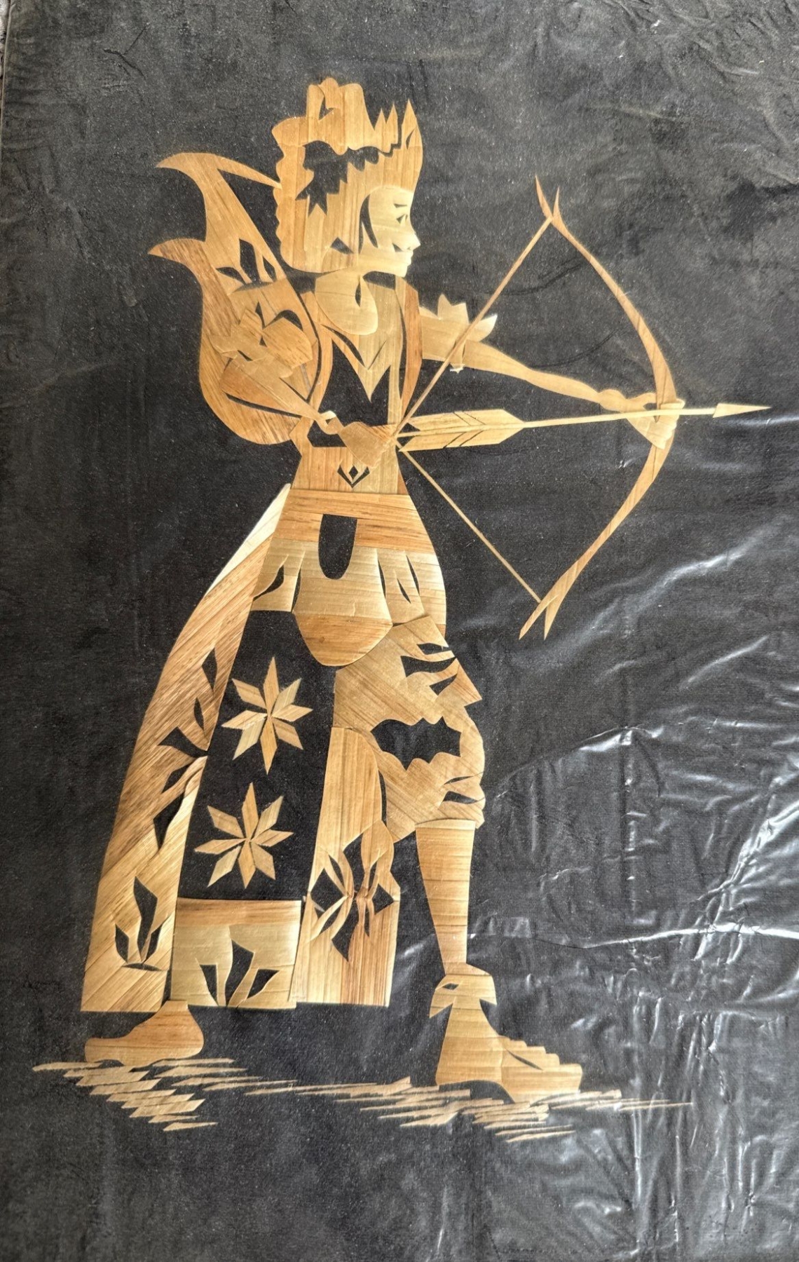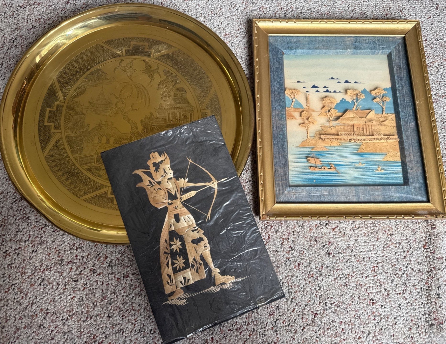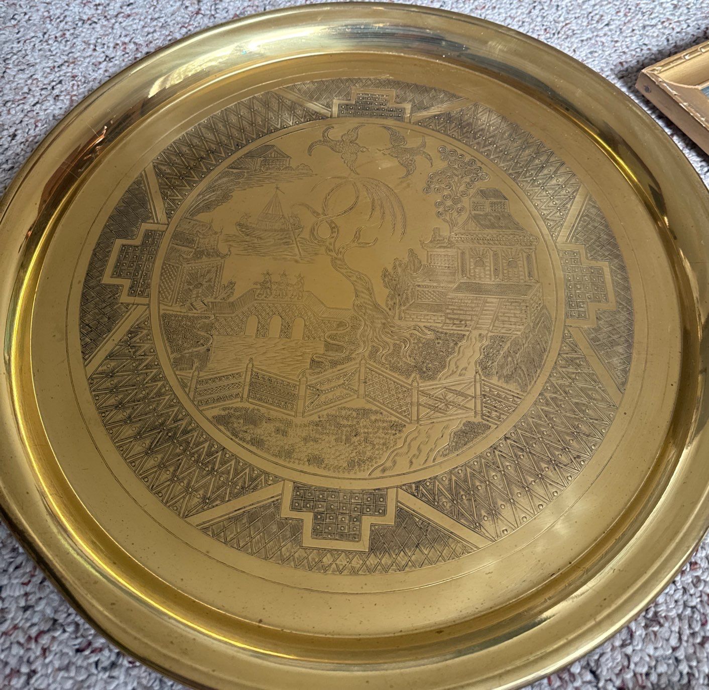 Decorative Brass Oriental Plate 16T w/ 3D Unframed Art Depiction Of Artemis w/ Bow & More