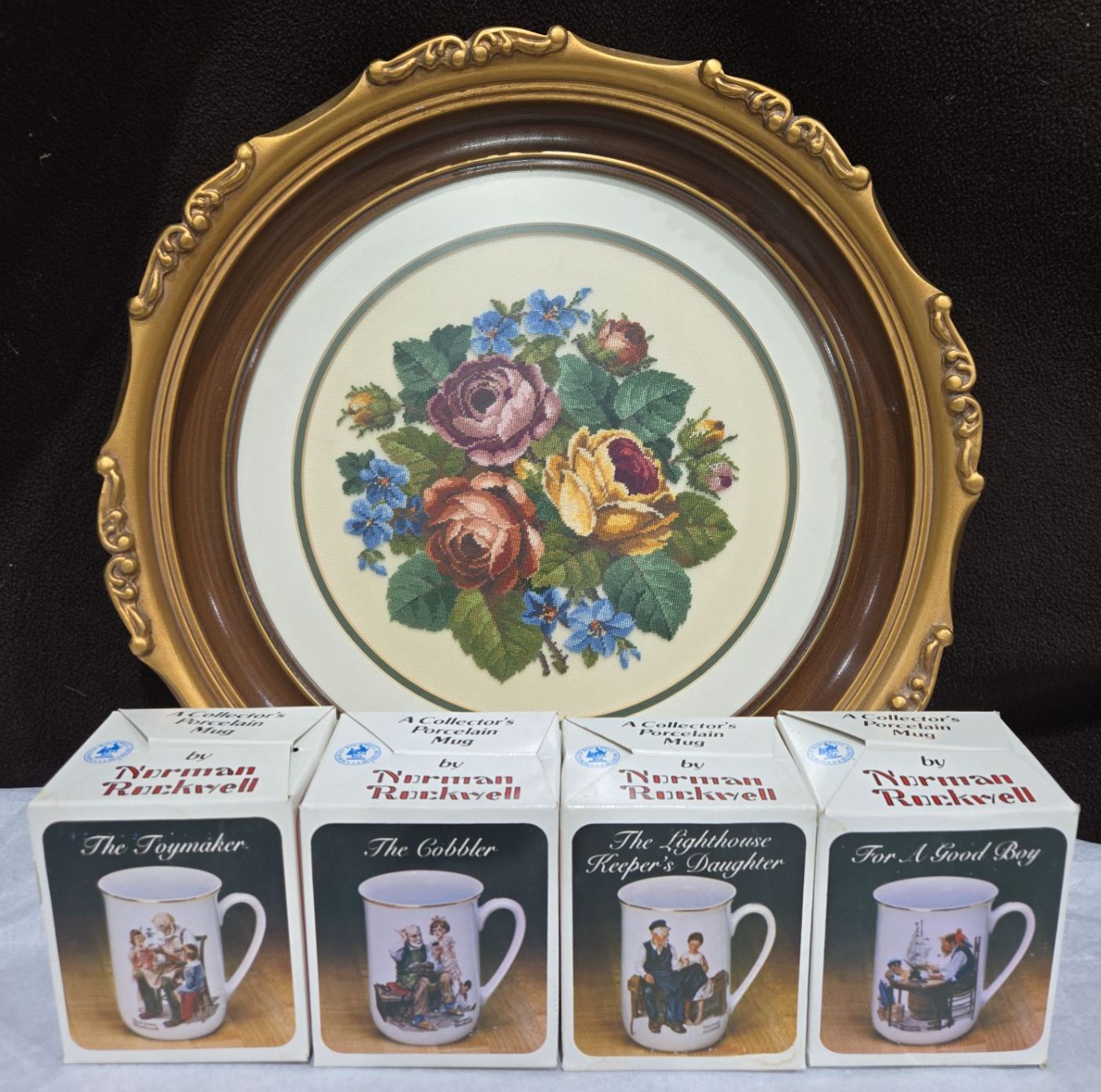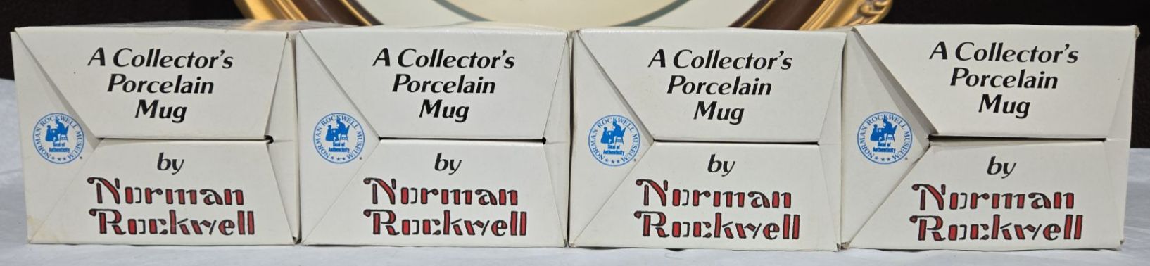 Decorative Hanging Plate w/ 4 Norman Rockwell Collectable Decorative Glasses