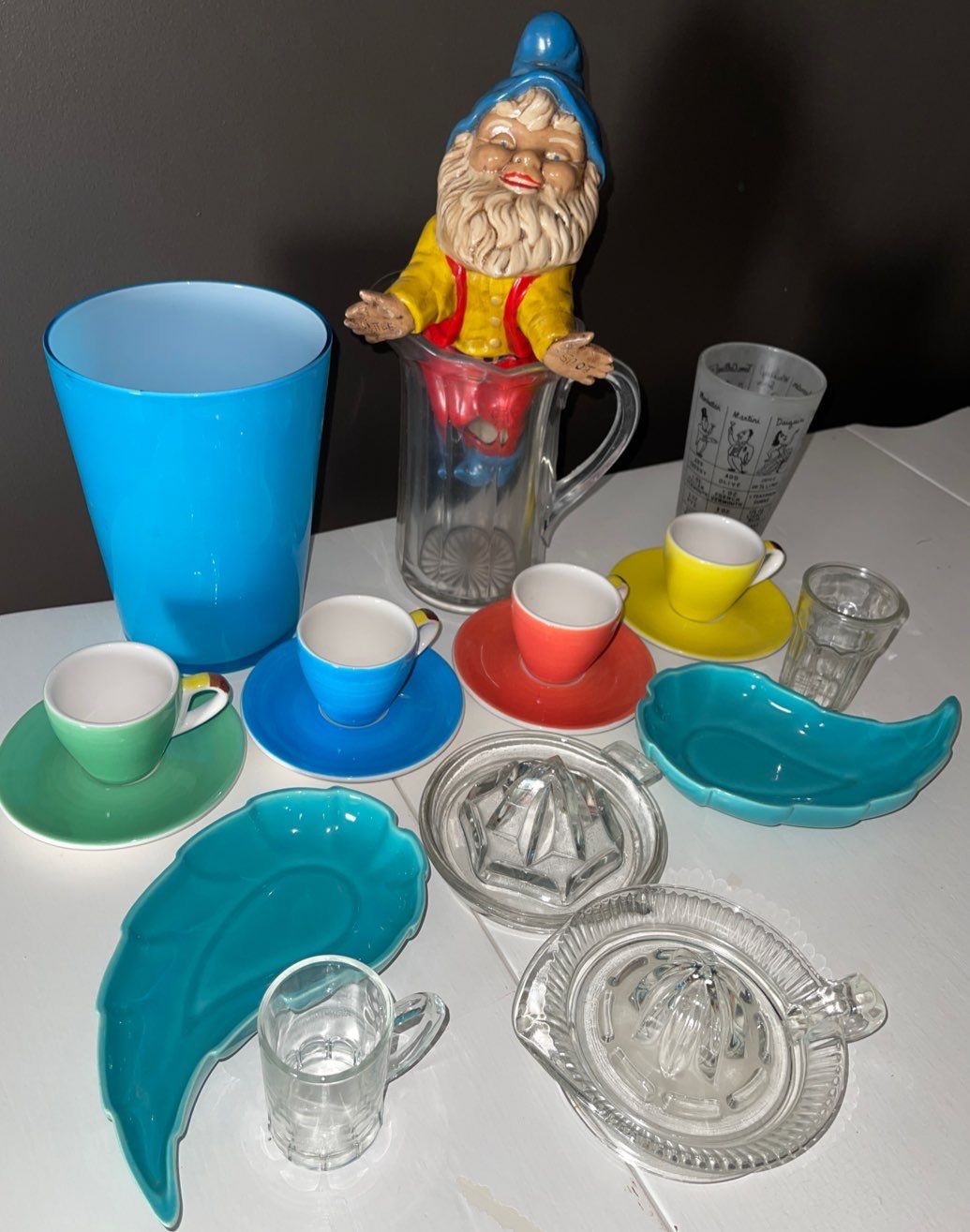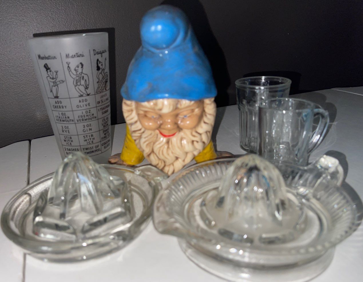 Decorative Kitchen Glass w/ Antique Garden Gnome 9T