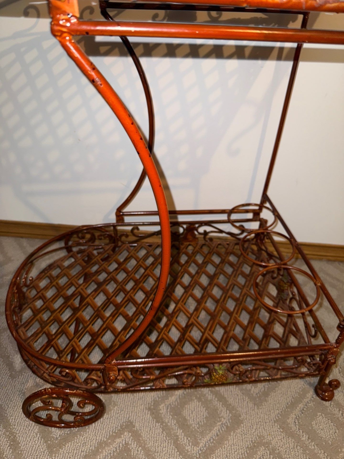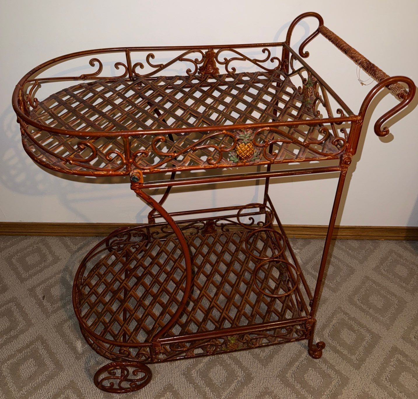 Decorative Mobile Mini Bar / Coffee Cart Faux Foliage Serving Bowls & More 29T