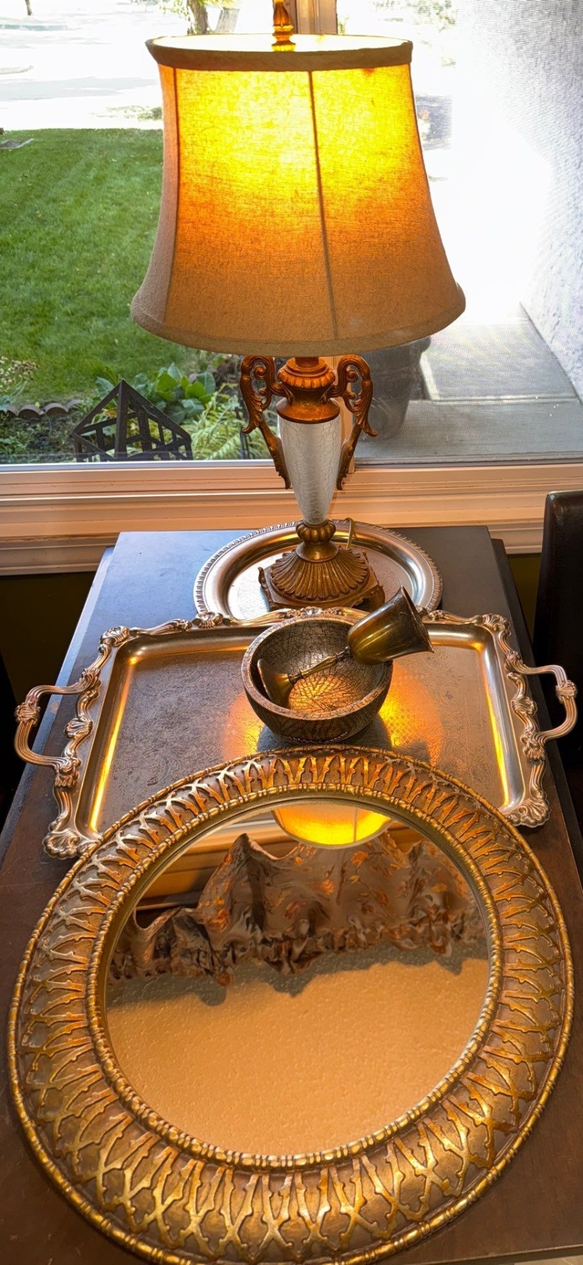 Decorative Table Lamp 14T w/ Silver Plated Serving Ware 24T