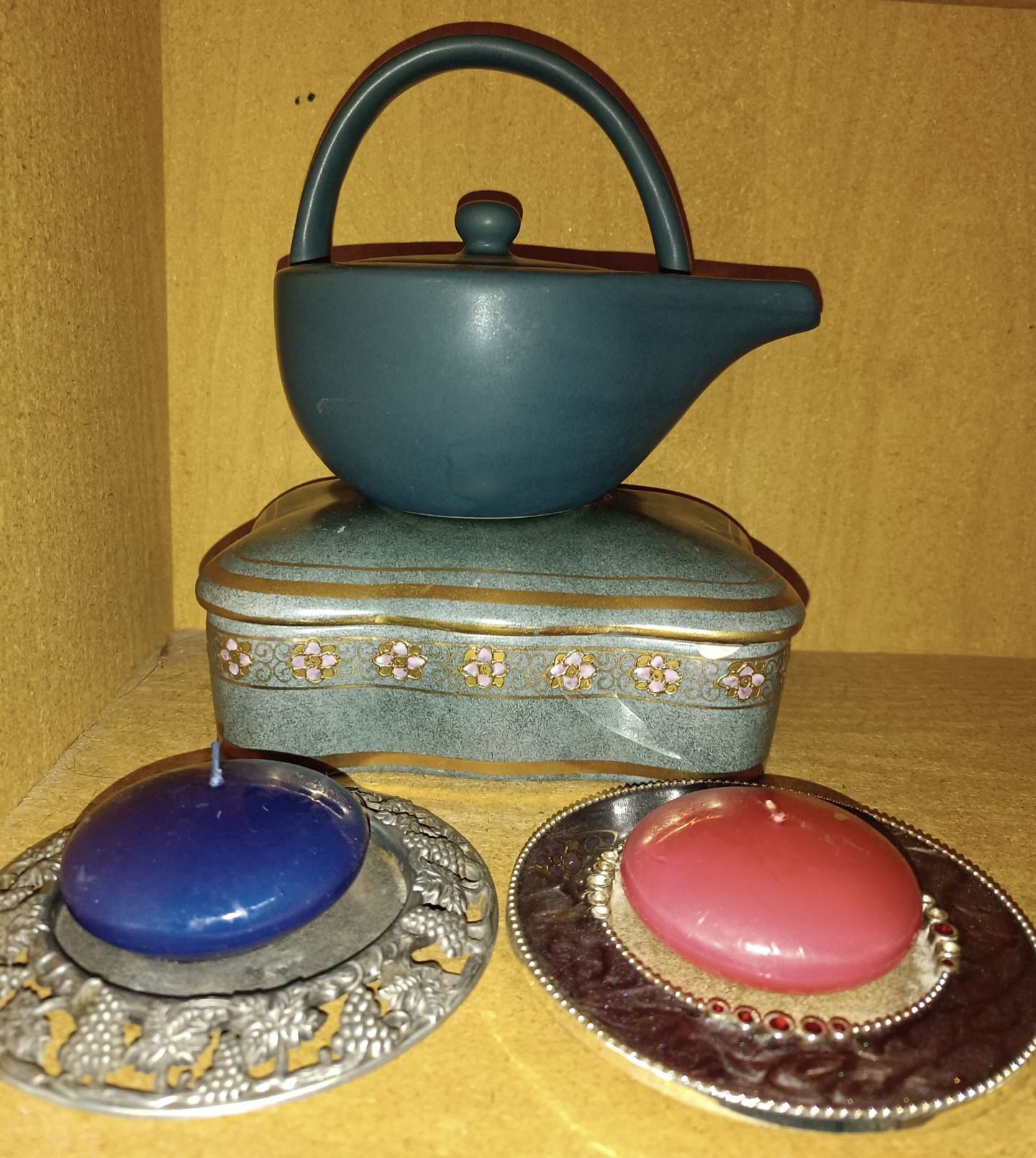 Decorative Toyo Trinket Box Teapot & Two Candle Catchers w/ Candles