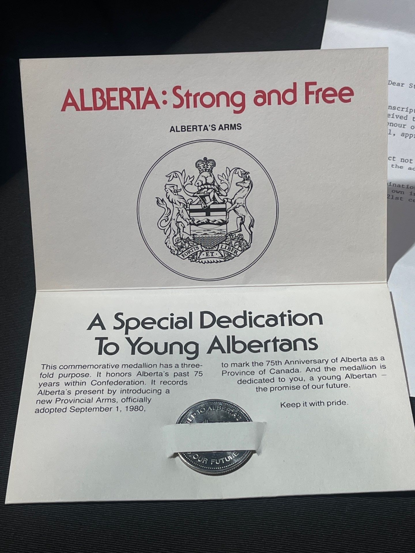 "Dedicated to Alberta's Youth" 1980 Medallion Coin