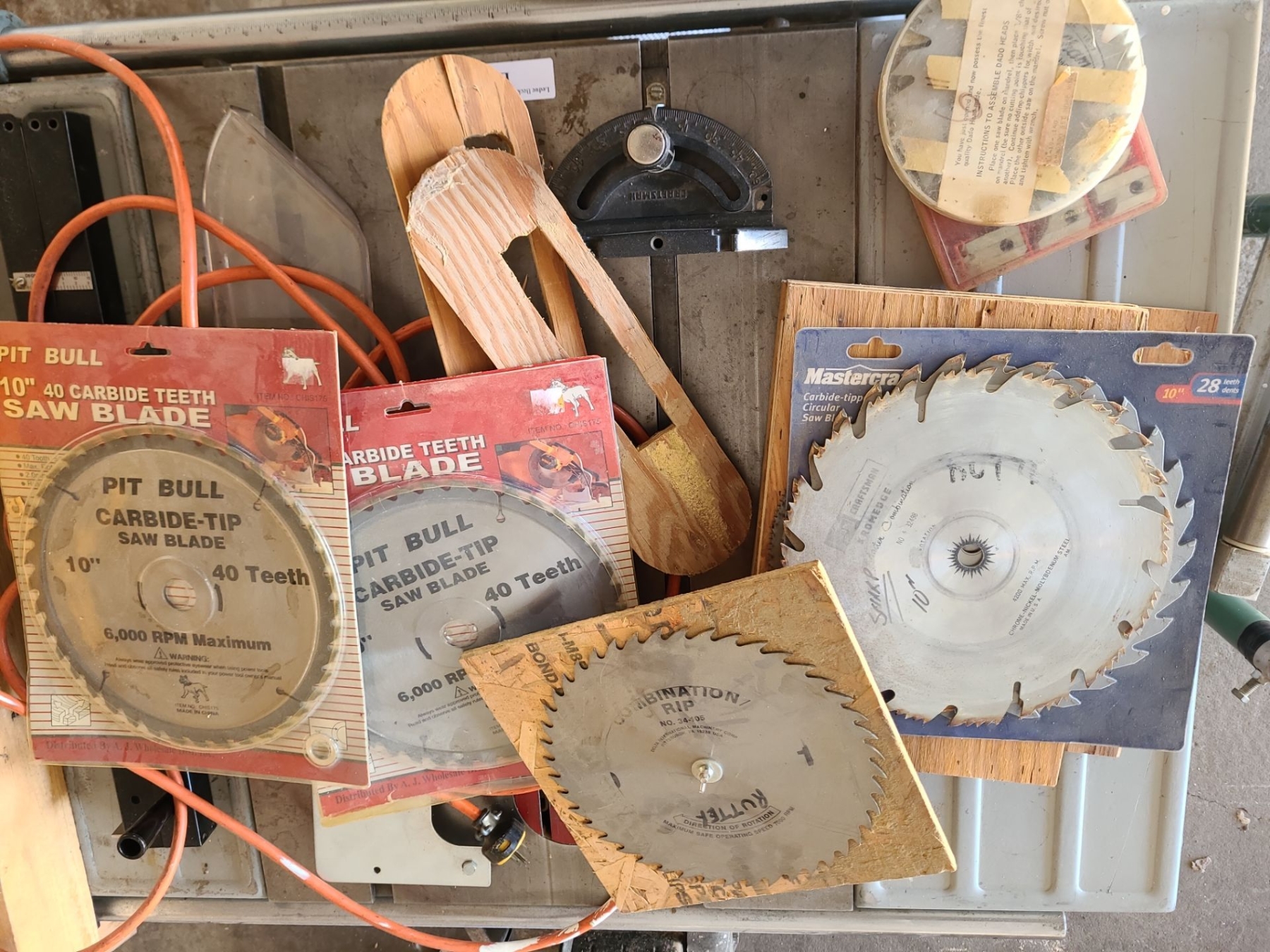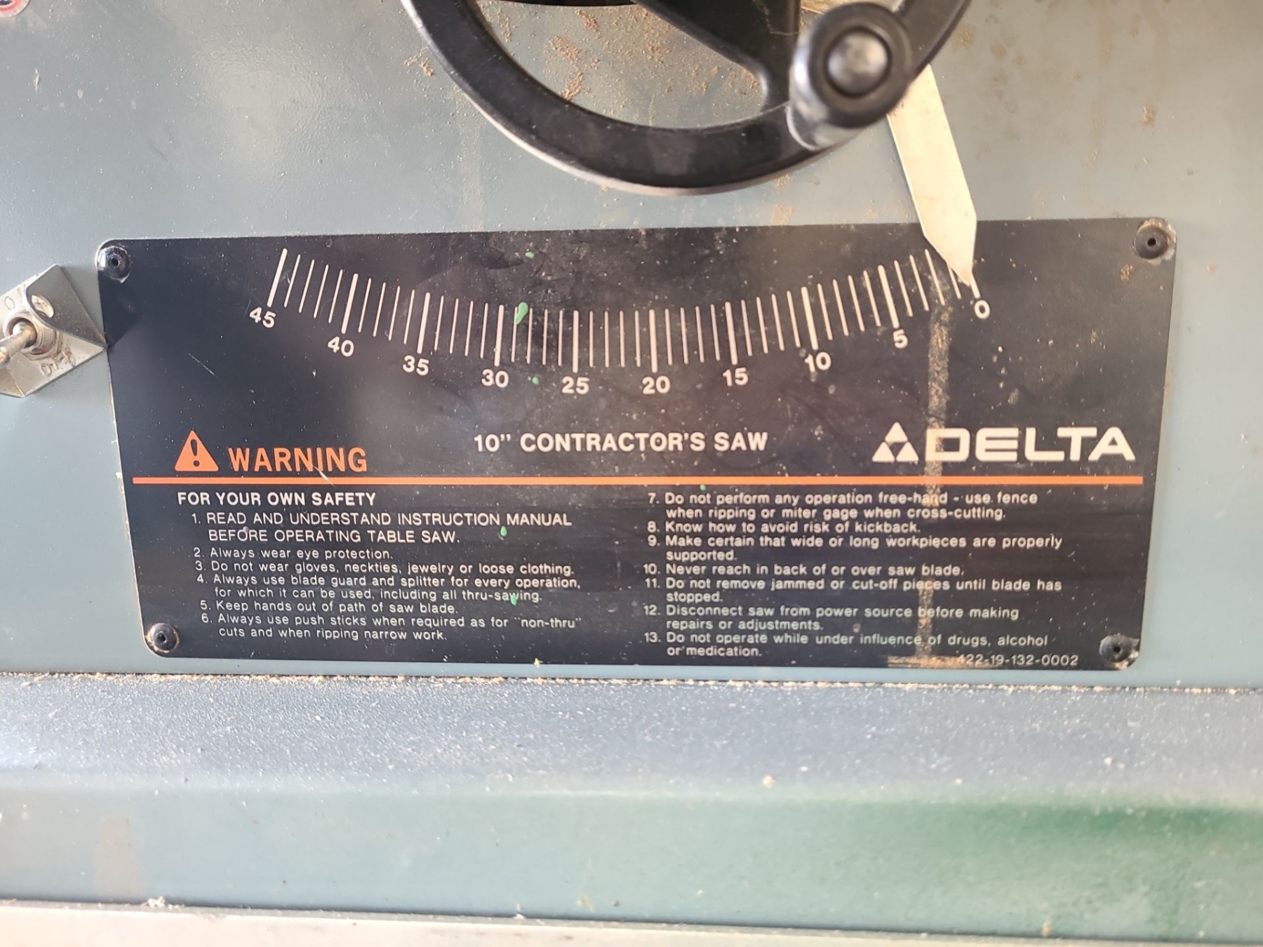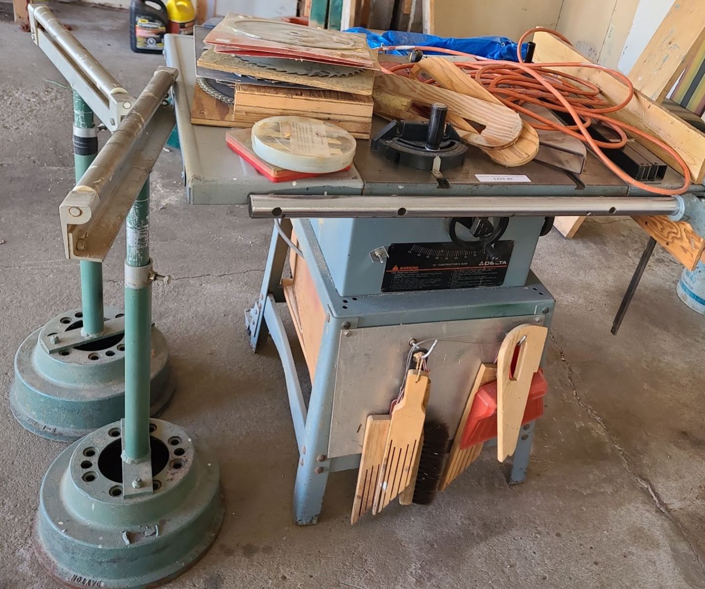 **Delta 10  Contractors Saw, Pair of Wood Rollers & Saw Blades.  Serial for Saw 90651180