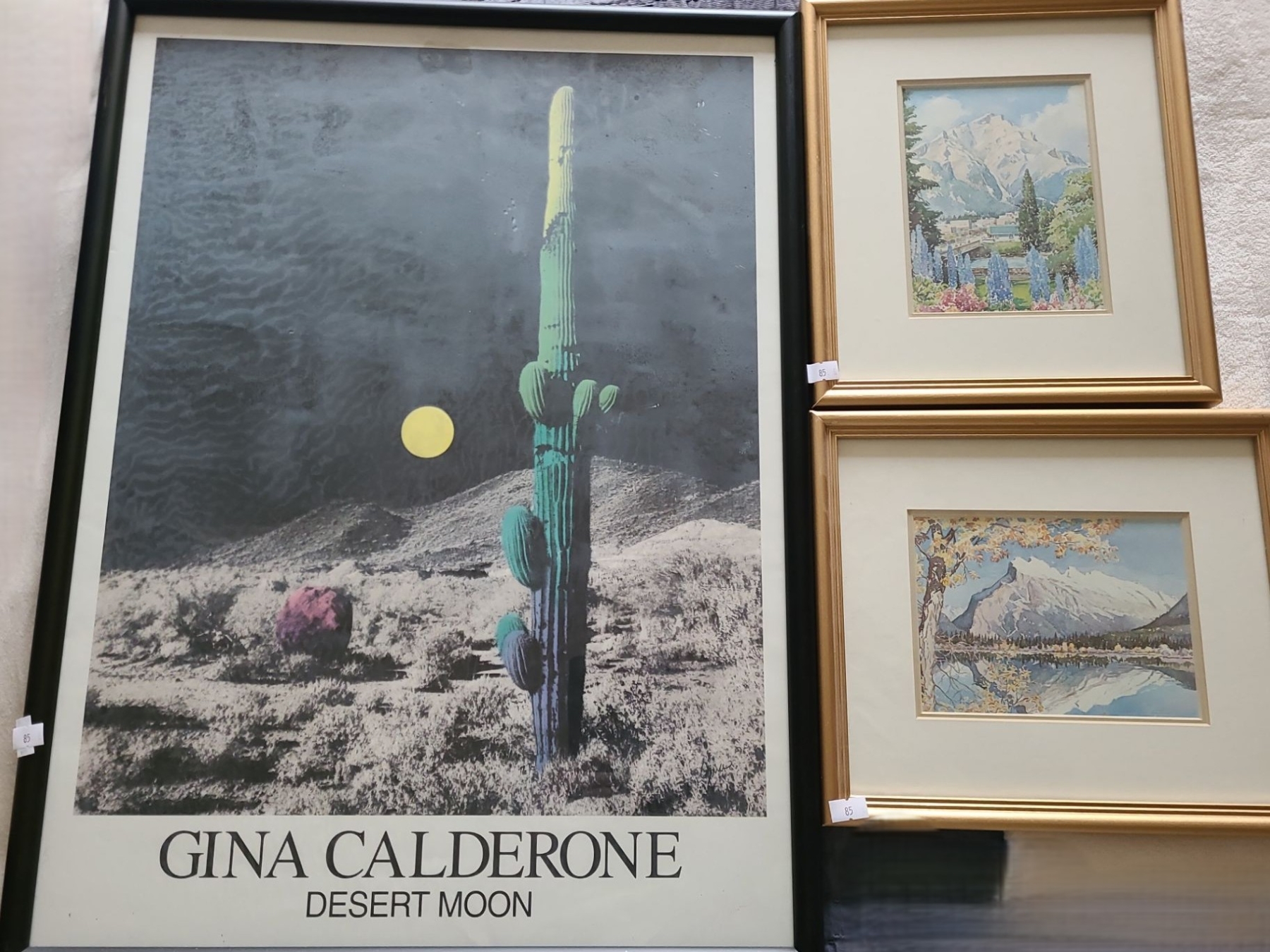 Desert Moon Poster 18.5 X 24.5, Two Edward Goodall Prints 11.5 X 10, 10 X 11.5, Framed Under Glass