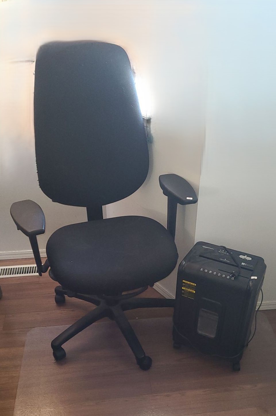 Desk Chair 24 W, 22 D, 47 T, Floor Protector, Large Capacity Paper Shredder
