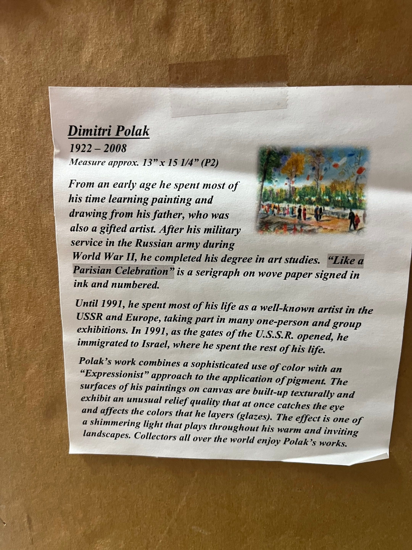 Dimitri Polak titled like a Parisian Celebration 2001
