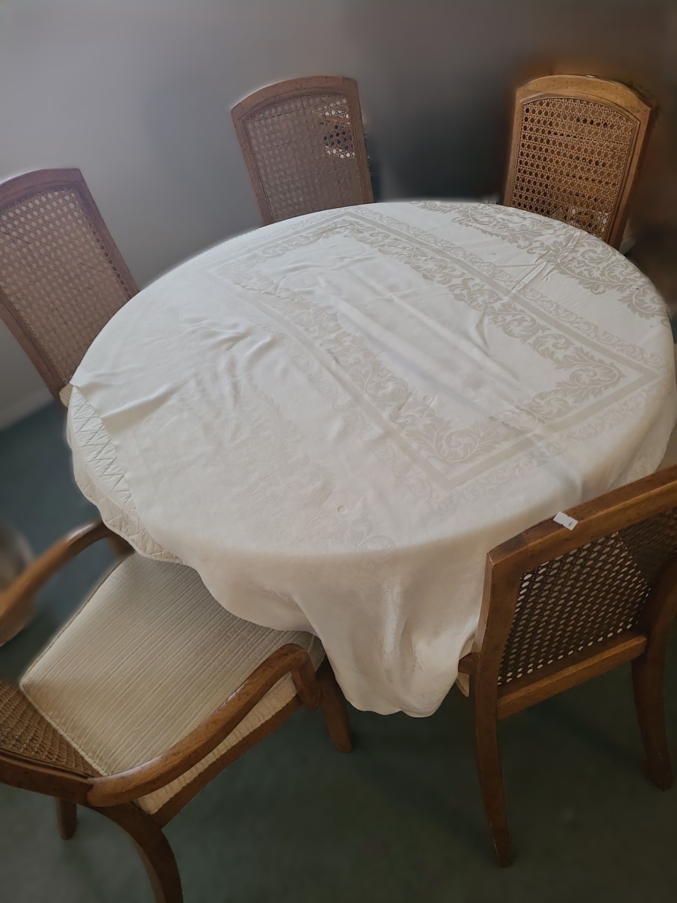 Dining Table 46" Diameter Top, 29 T w/ Two Arm 21 W, 19 D, 37 T, Four Side 19 W, 19 D, 37 T Chairs