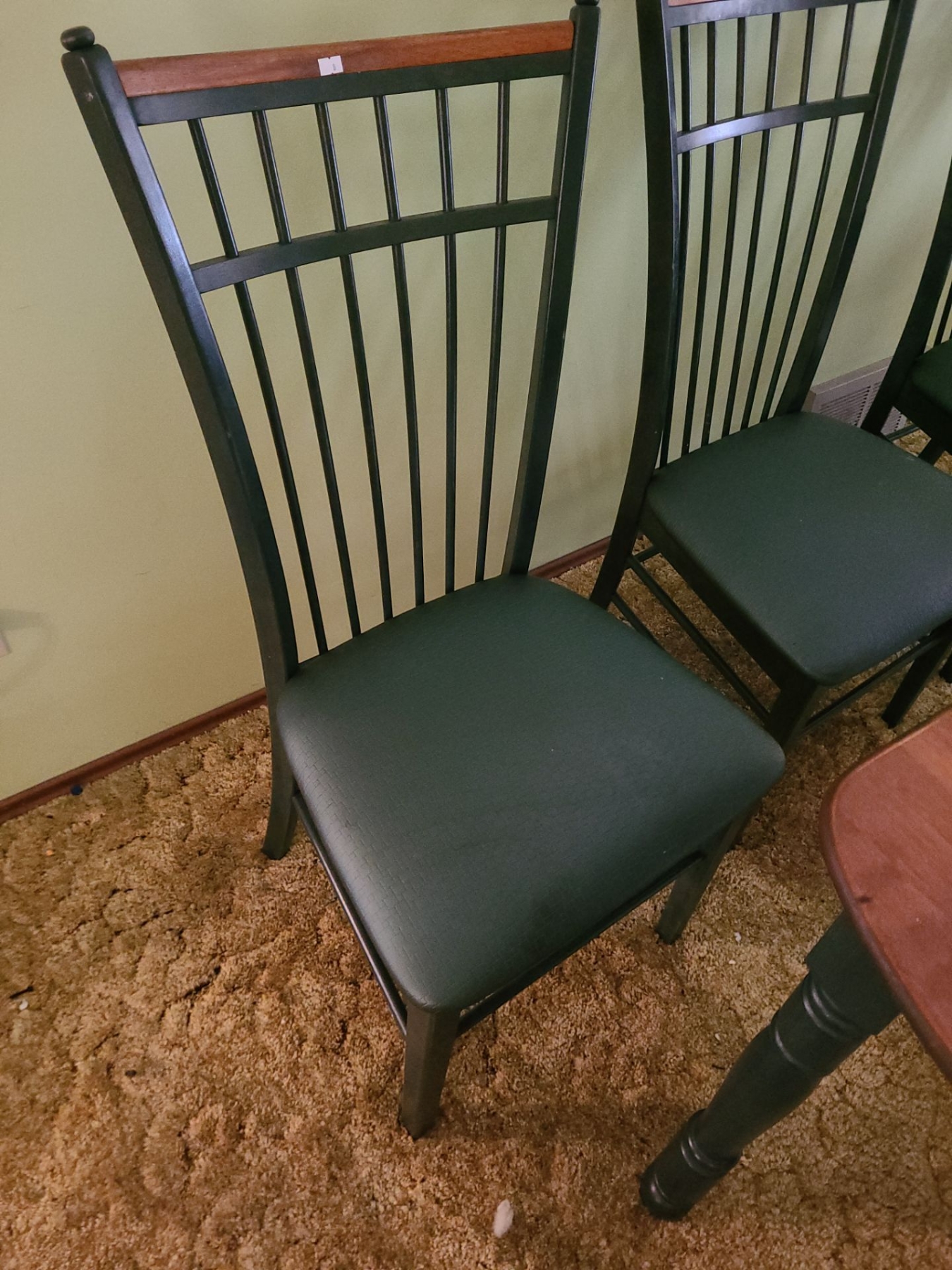 Dining Table 60 W, 40 D, 30 T and 3 Chairs 20 W, 18 D, 42 T, also: Arm Chair 21 W, 18 D, 37 T