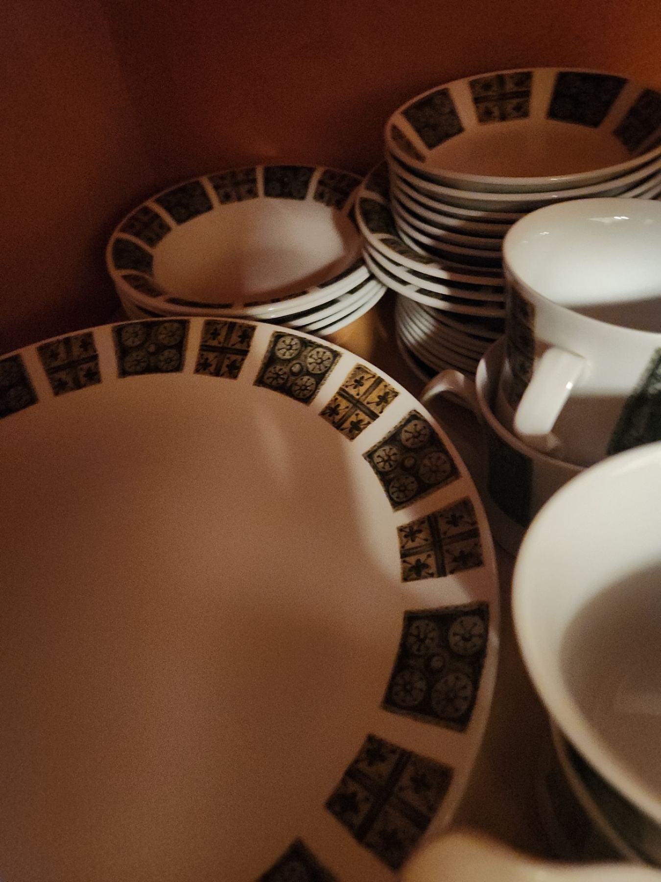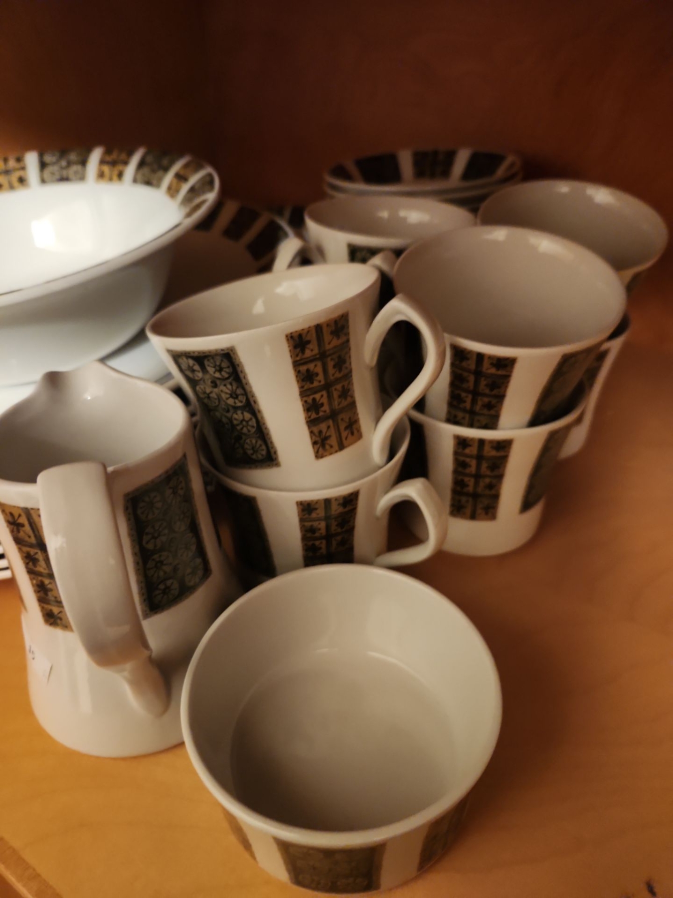 Dinnerware- Burleighware "Aragon"- Plates, Small Bowls, Serving Bowl, Mugs, Cream/ Sugar Bowl