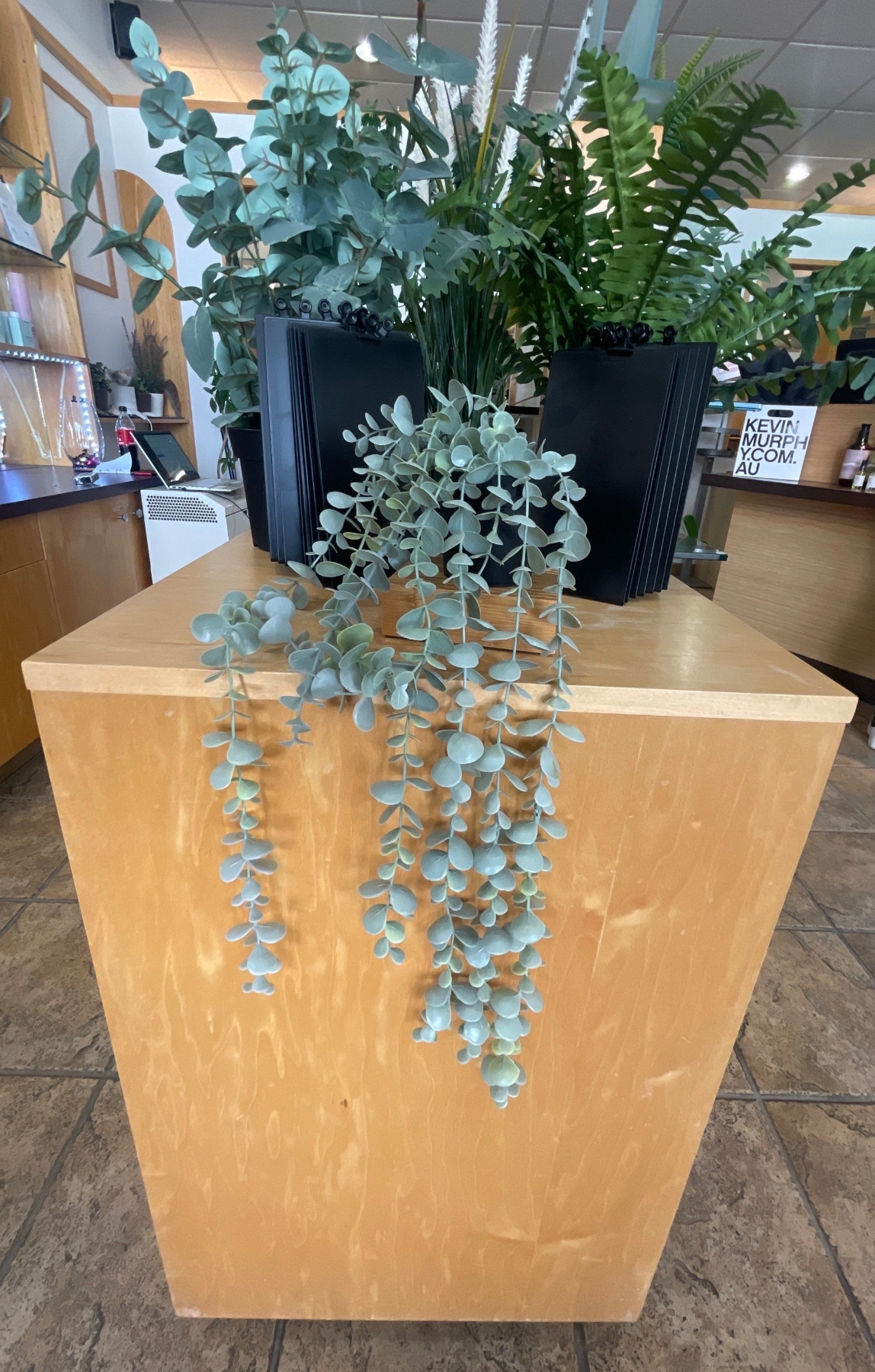 Display Pedestal 20x20x38 w/ Merchant Signs Faux Plants & Decor
