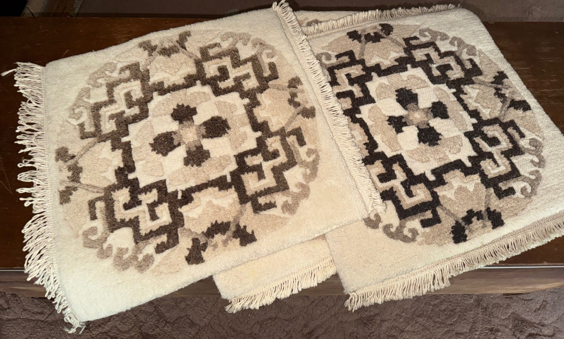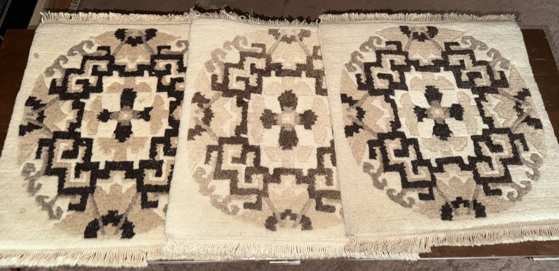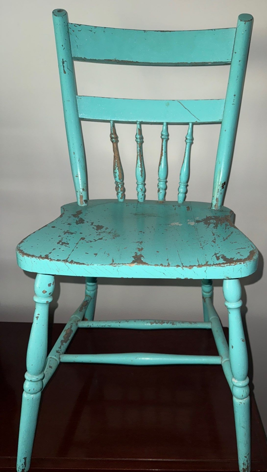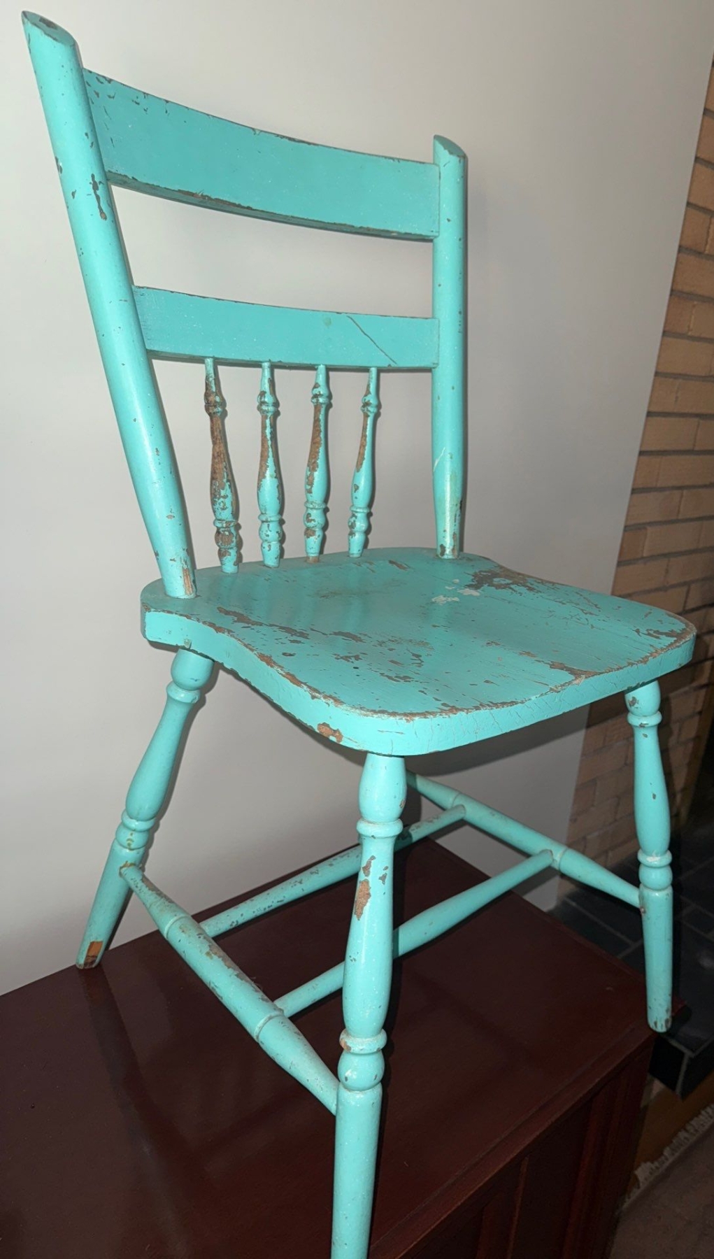 Distressed Chalk Painted Antique Spindle Chair 37T  w/ Handmade Hook Rug Trio