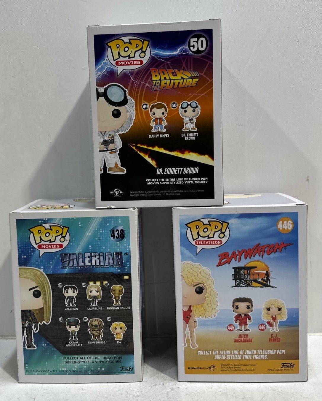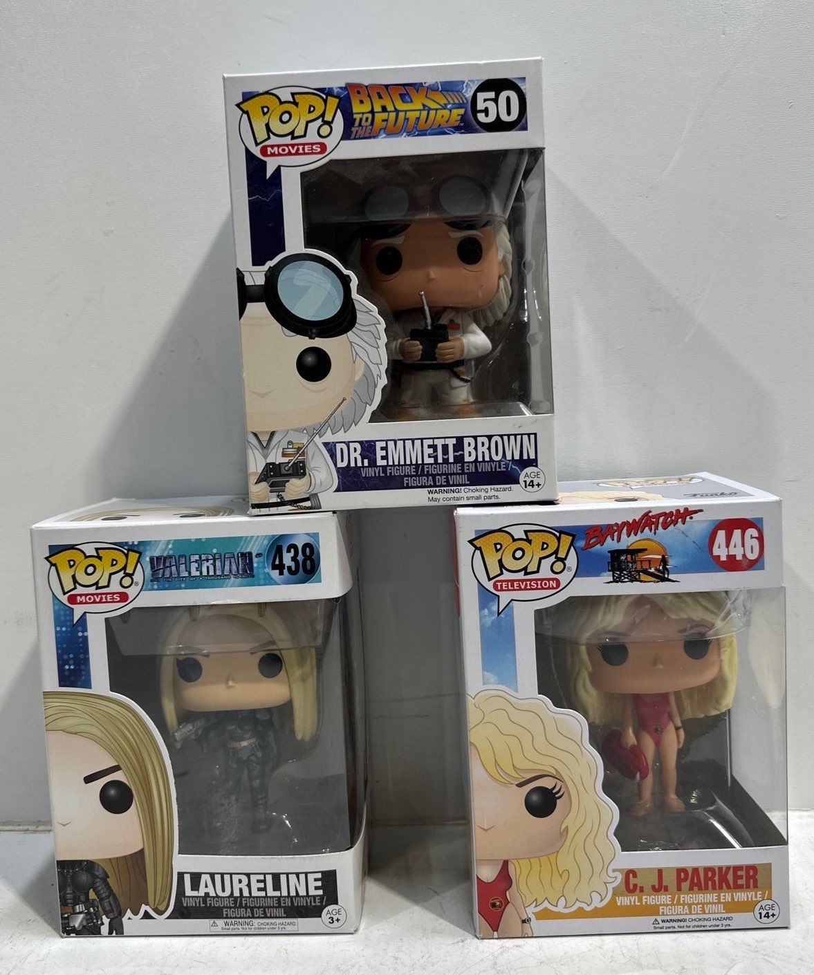 Dr Emmett Brown, Laureline, CJ Parker Funko Pops