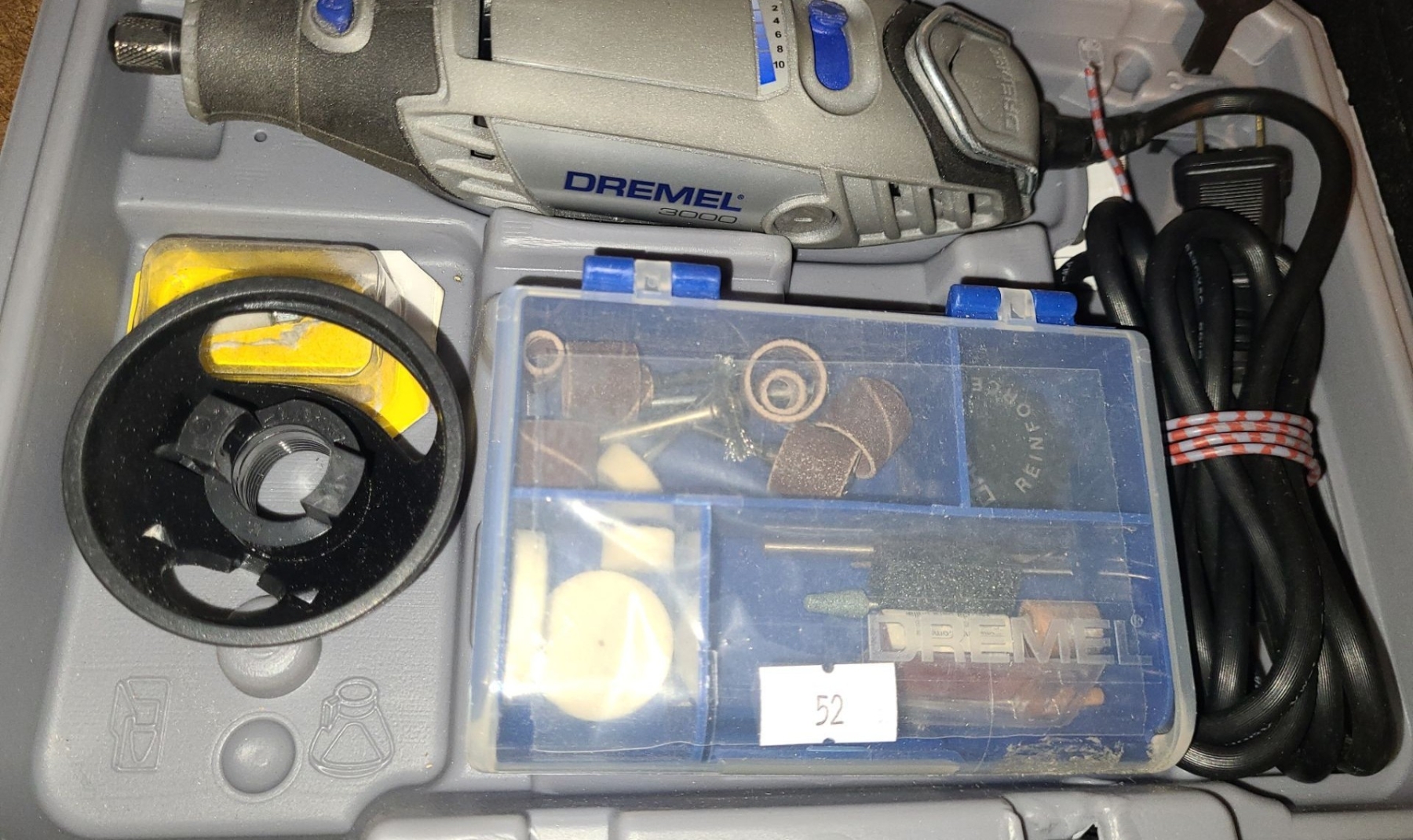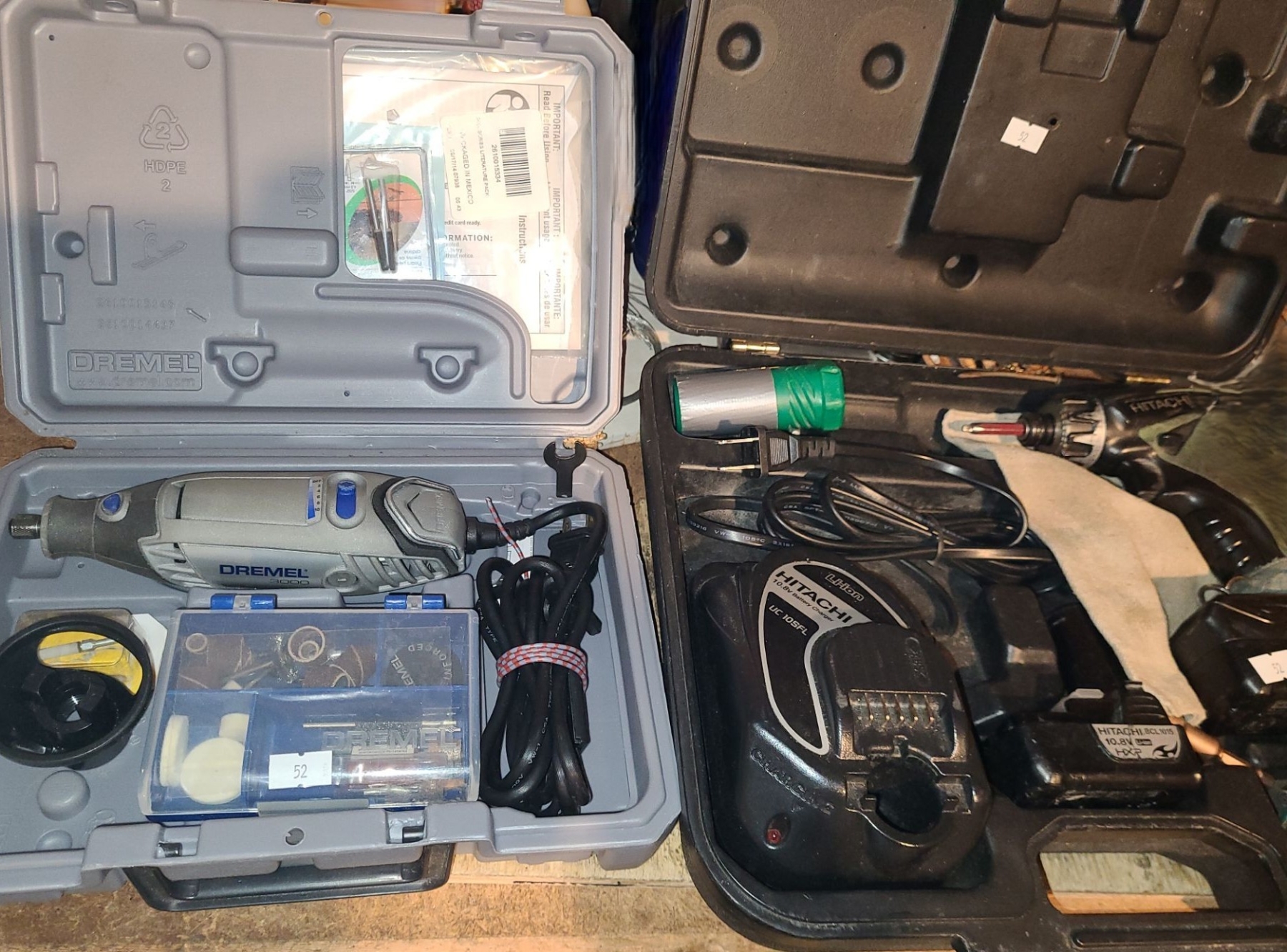 Dremel Model 3000 w/ Case, Hitachi BCL1015 Cordless Drill w/ Charger and Case