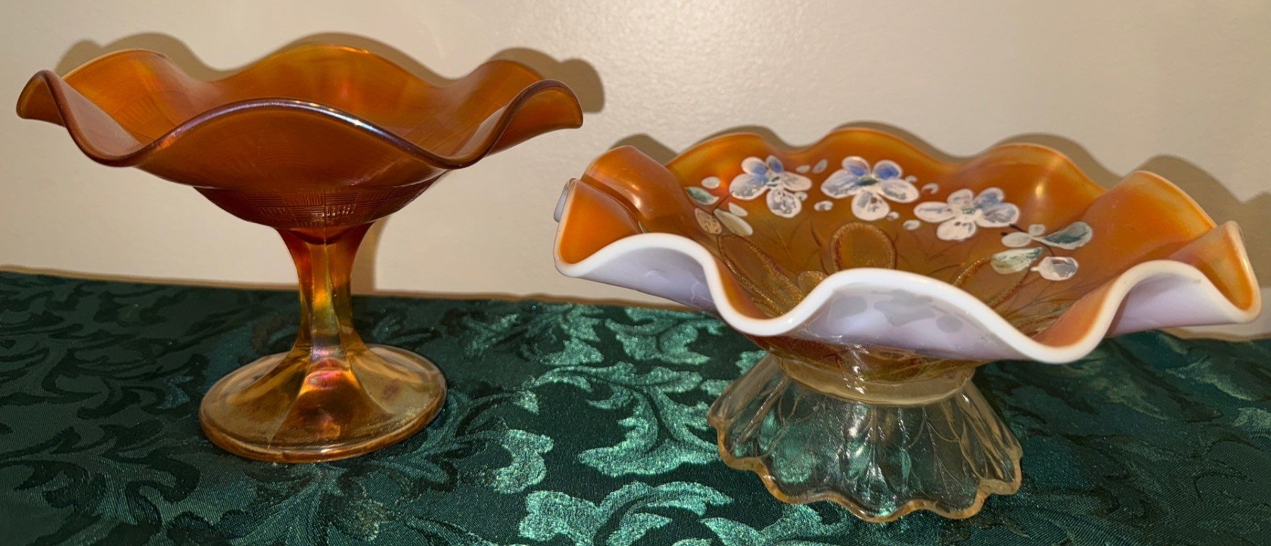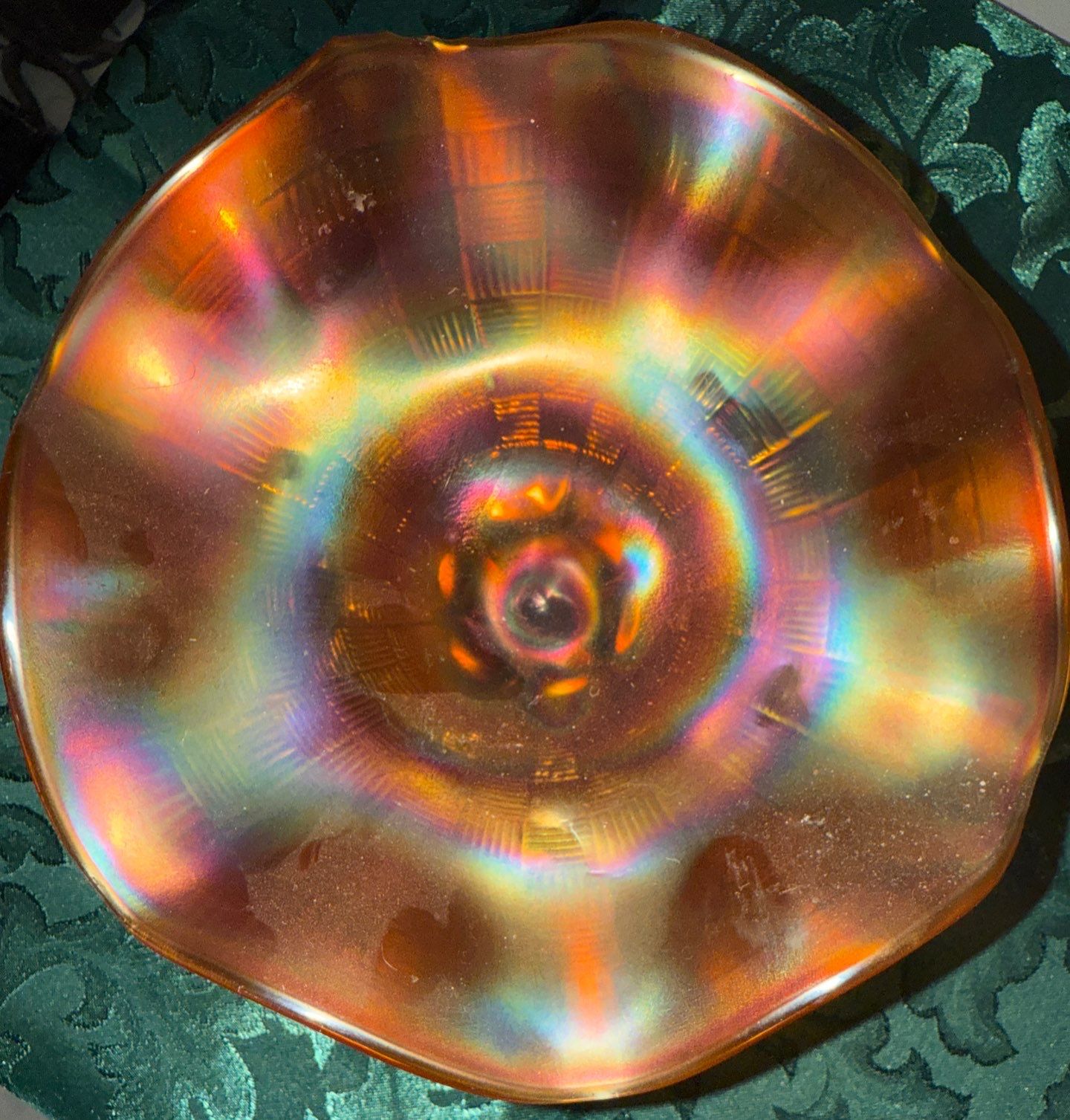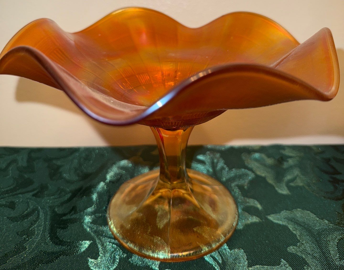 Dugan Peach Opalescent Carnival Glass Coin Spot Pattern Compote & Pedestal Dish