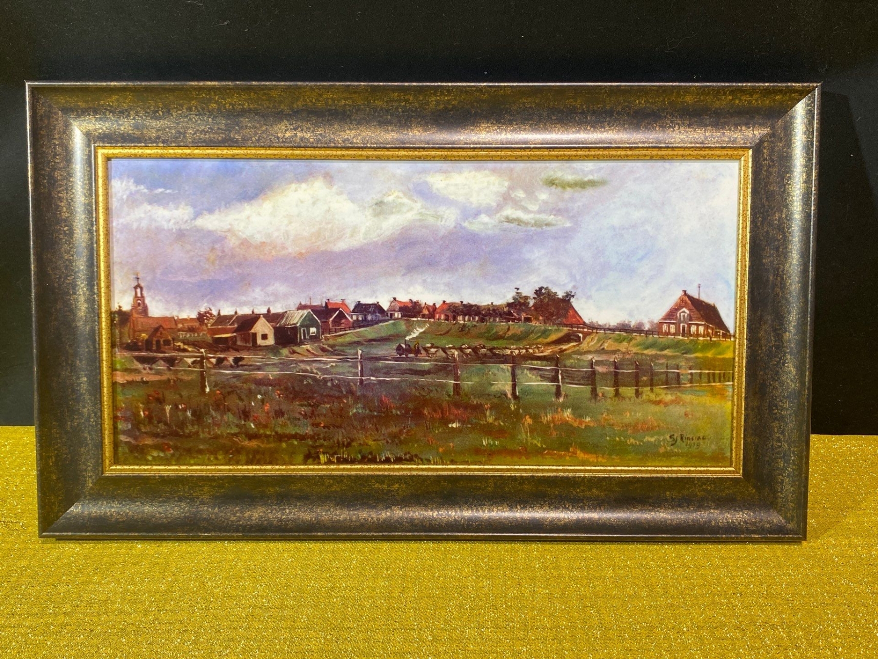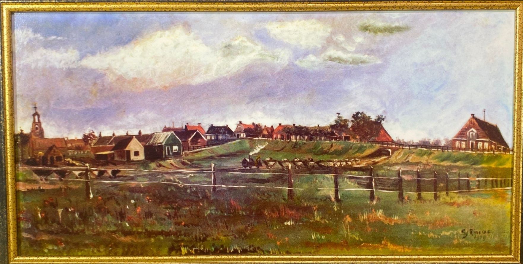 A beautifully framed print depicting a classic Dutch landscape, capturing serene skies, rolling fields, and traditional architectural elements. This artwork evokes the timeless charm of the Netherlands, making it a perfect decorative piece for collectors, art enthusiasts, or anyone seeking to add a touch of European elegance to their home or office.