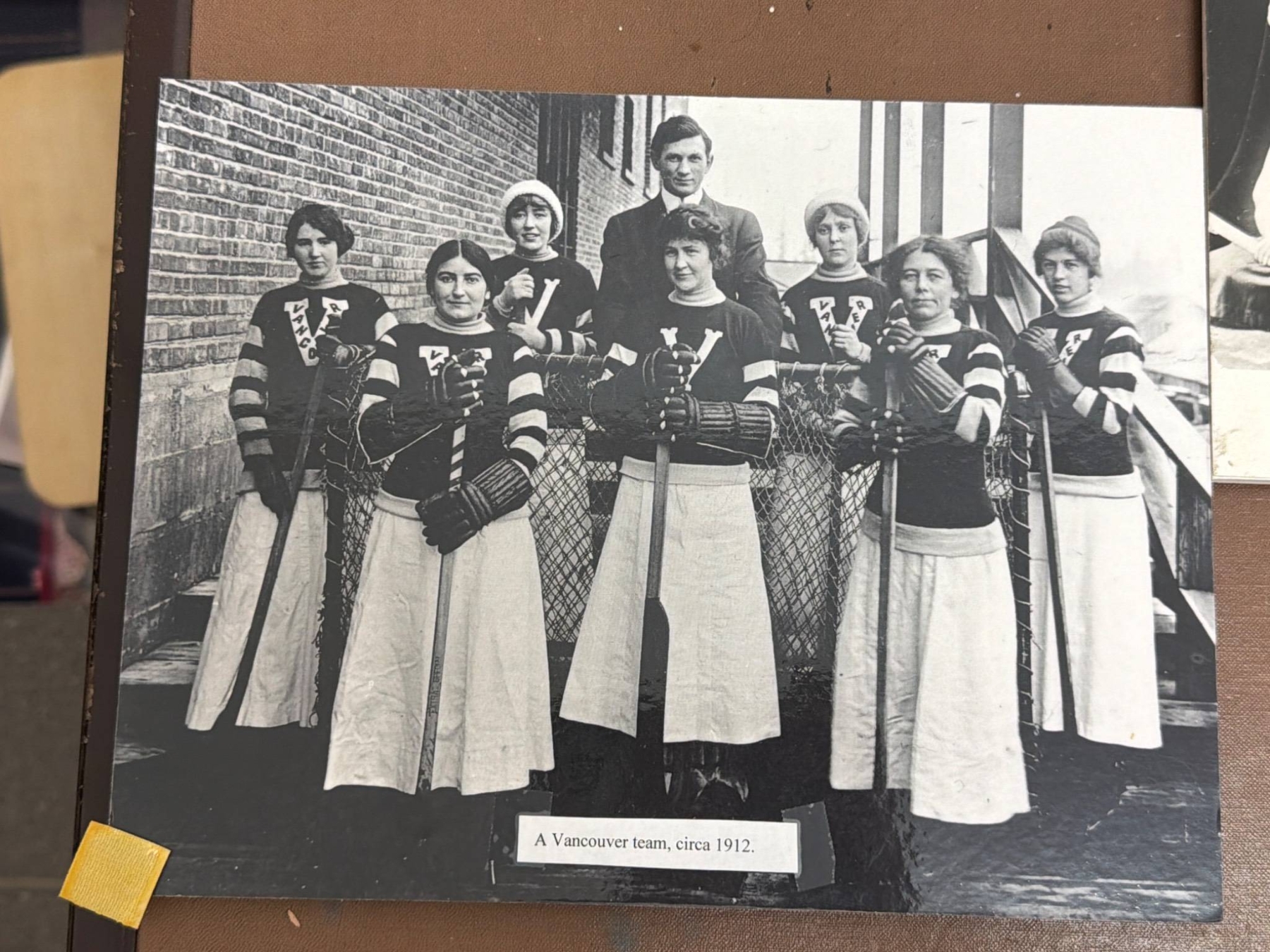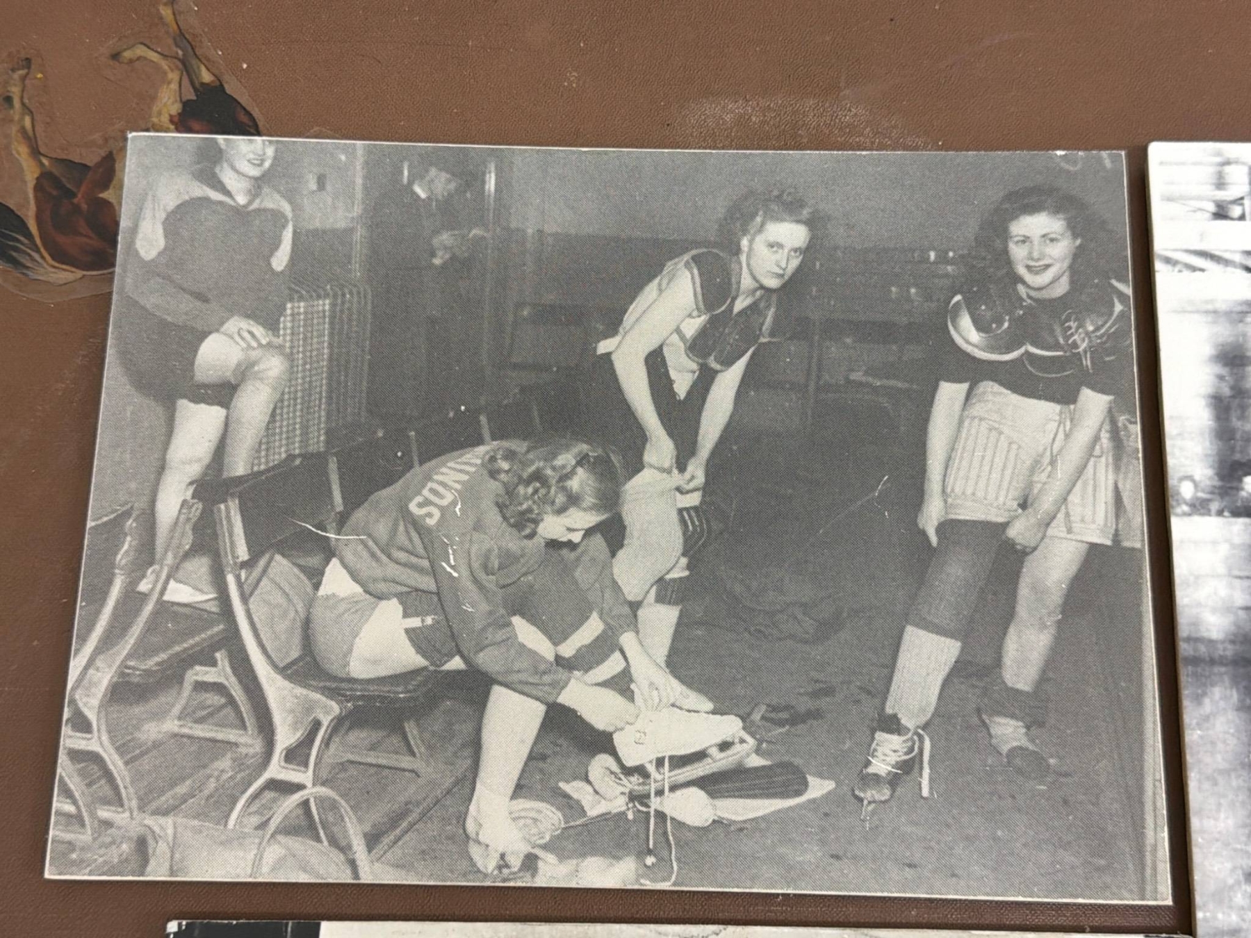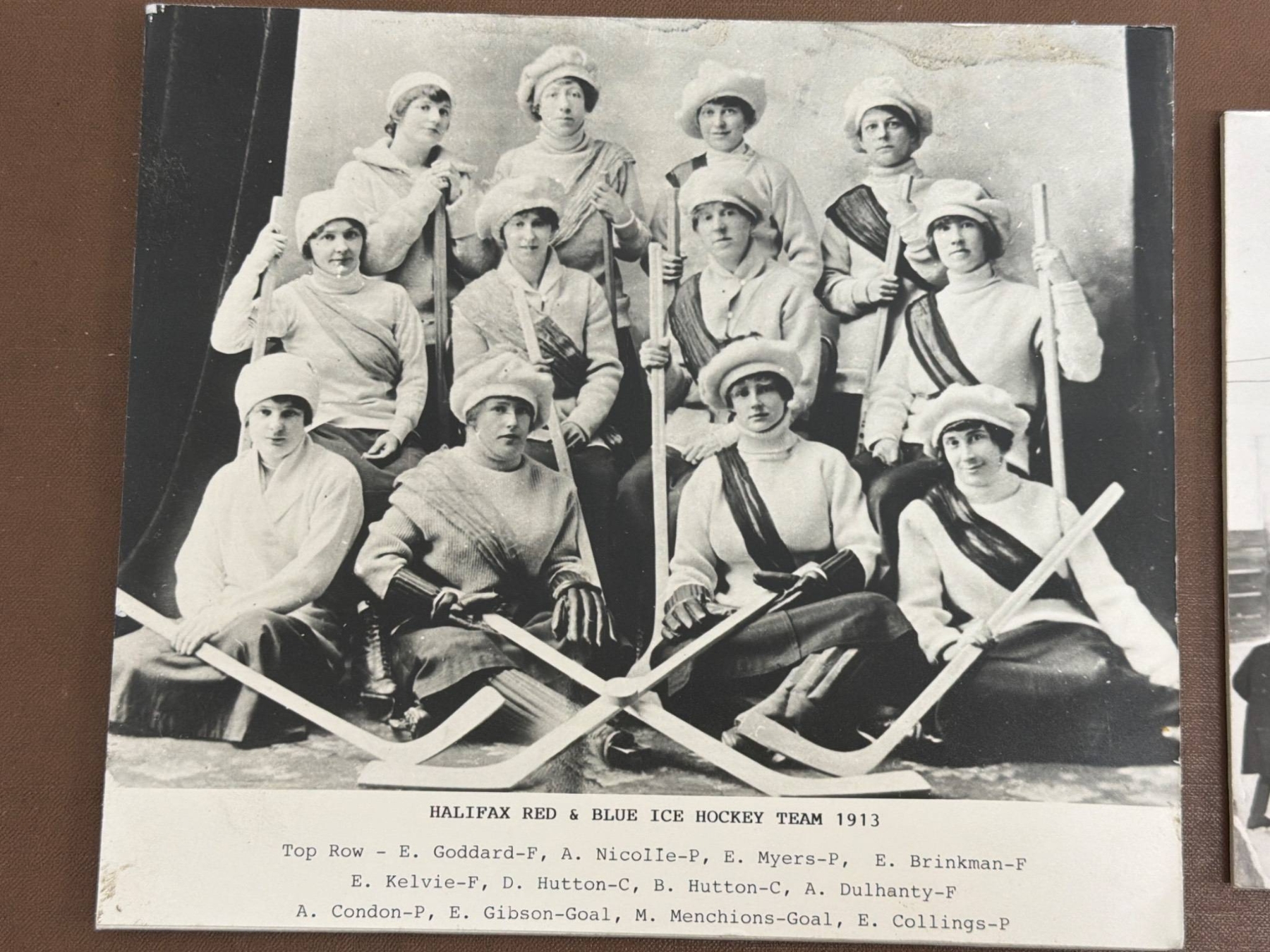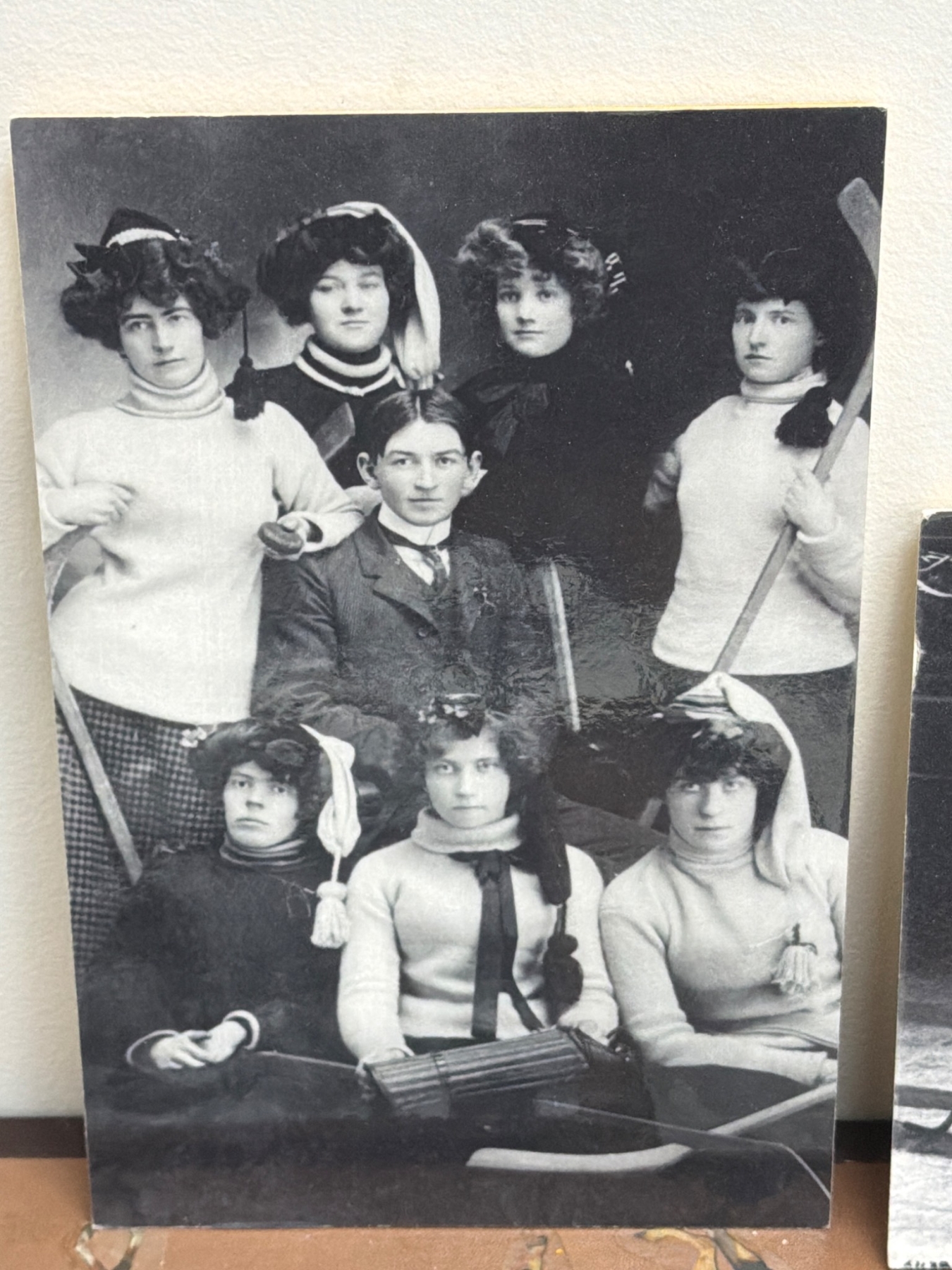 A remarkable collection of vintage photographs depicting women's hockey teams and players from the early 20th century. Highlights include team group photos, action shots on outdoor and indoor rinks, and historical notes referencing games from 1917 to 1949. These black-and-white images are an excellent window into the history of the sport and women's roles in athletics. Ideal for sports history enthusiasts or collectors of historical memorabilia.