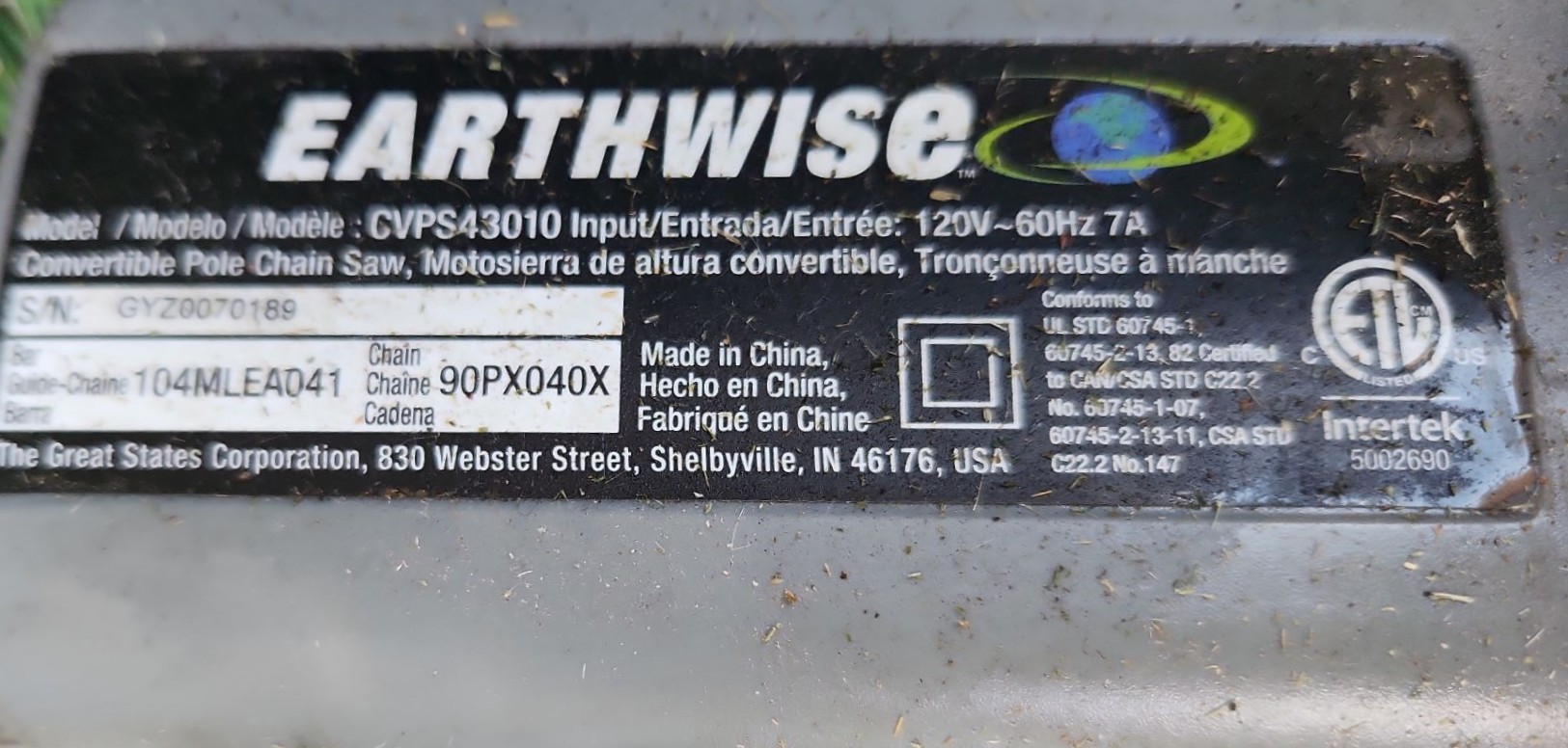 Earthwise Model CVPS43010 Combo Chain and Pole Saw