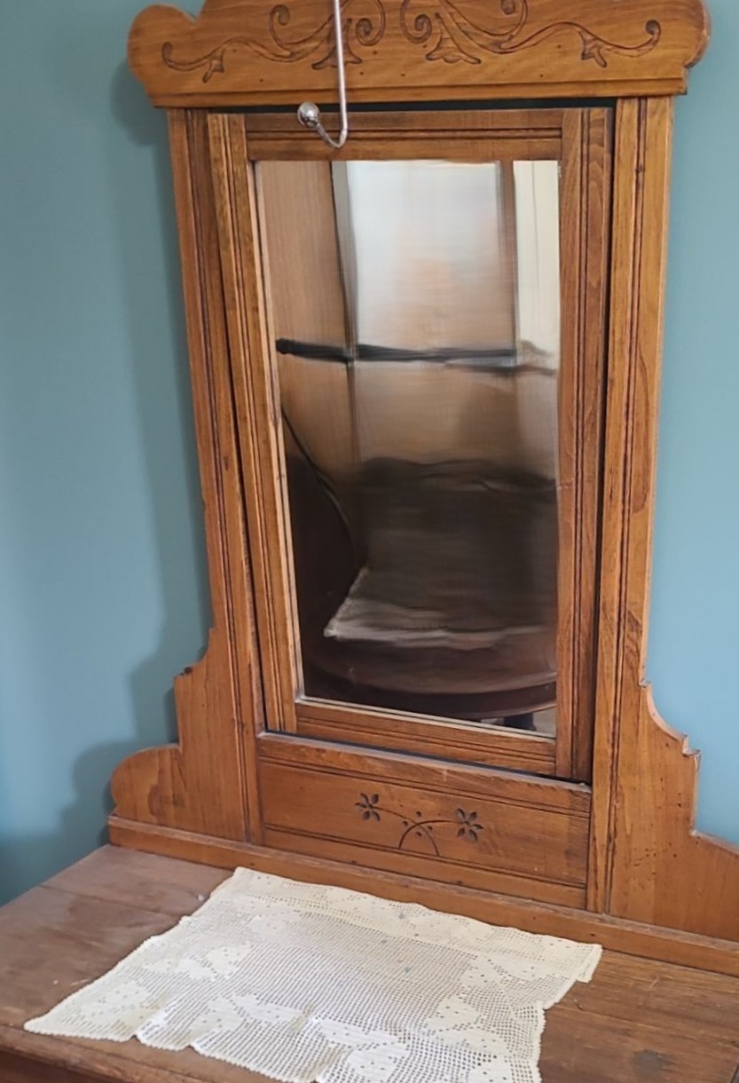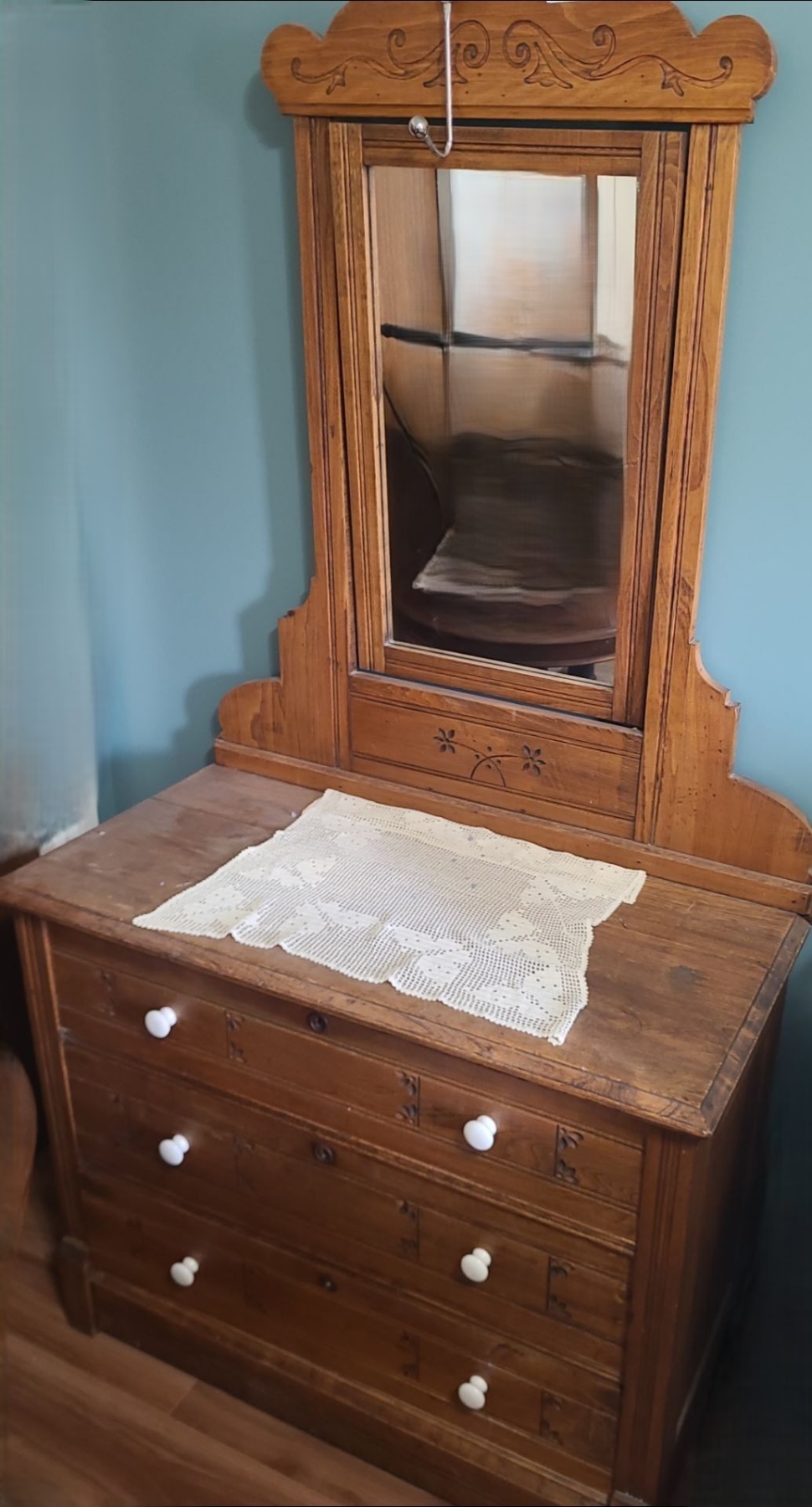 Eastlake Wood 3 Drawer Dresser w Attached Mirror (Faux Locks) 38 w 18 d 69 h