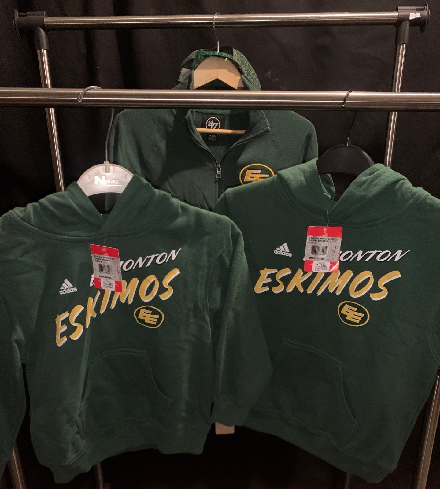 Edmonton Eskimos Merch; 2 Children's Hoodies (M/L), And One Adult (M) Hoodie + Cap Set