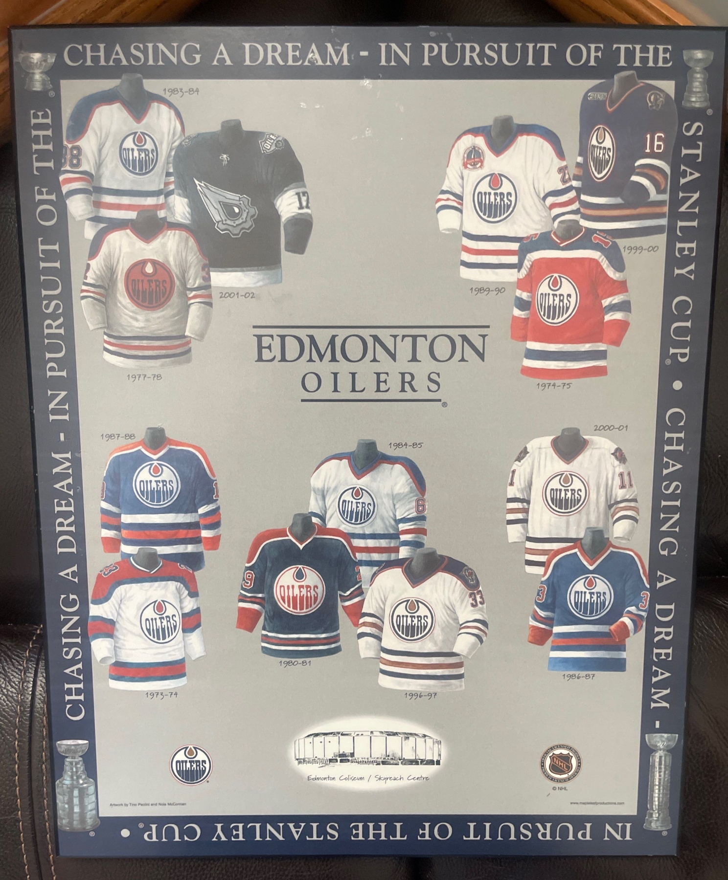 Edmonton Oilers "Chasing A Dream" Wall Hanging Mark Messier Signed Autograph w/other art 13"w x 17"tall