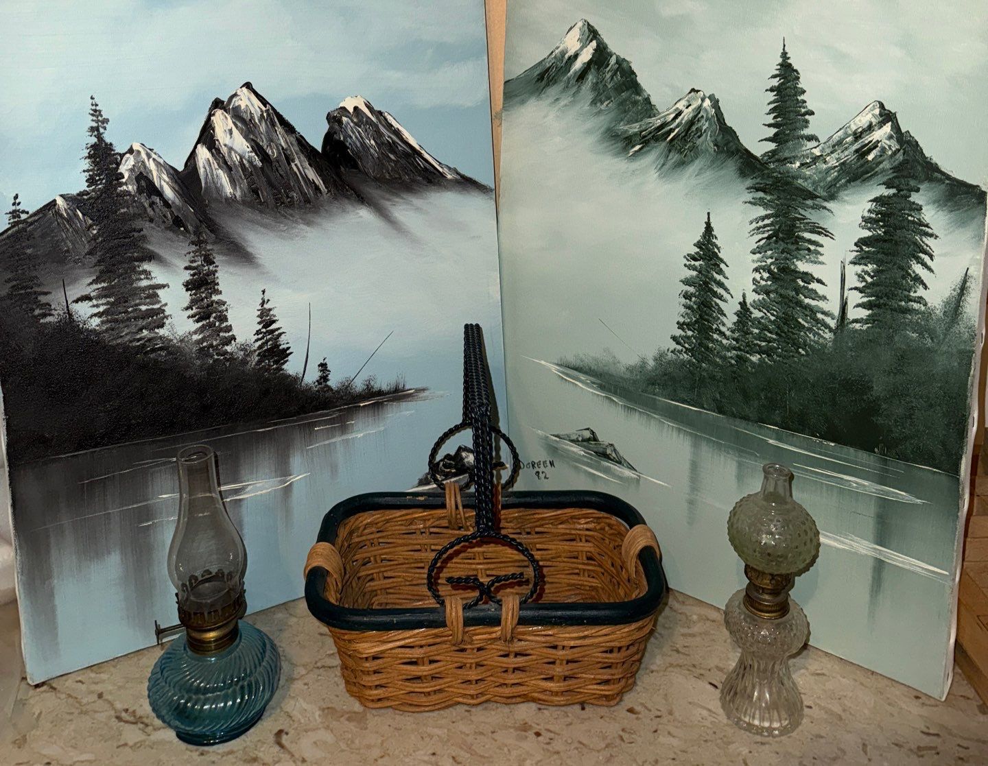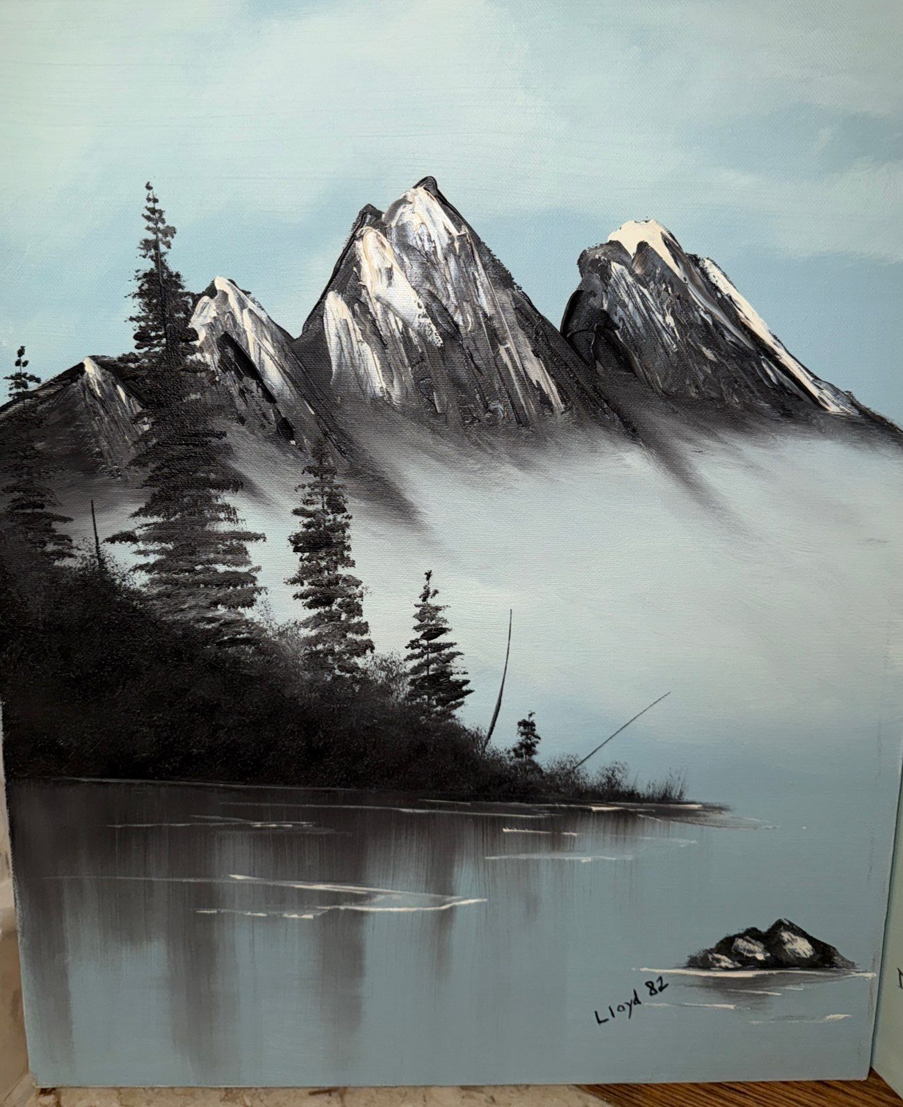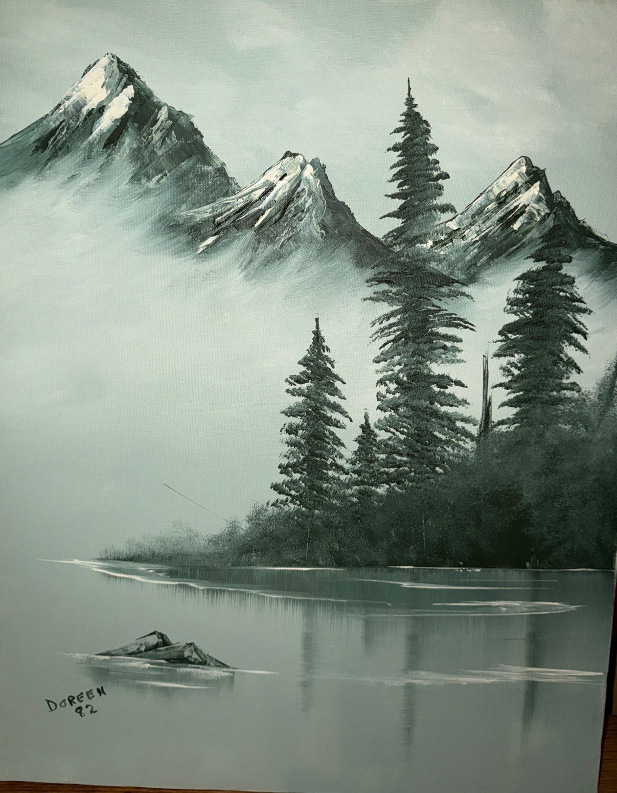 Edmonton's Own Artist Doreen w/ Her Oil On Canvas Mountain Scape Art 18x22