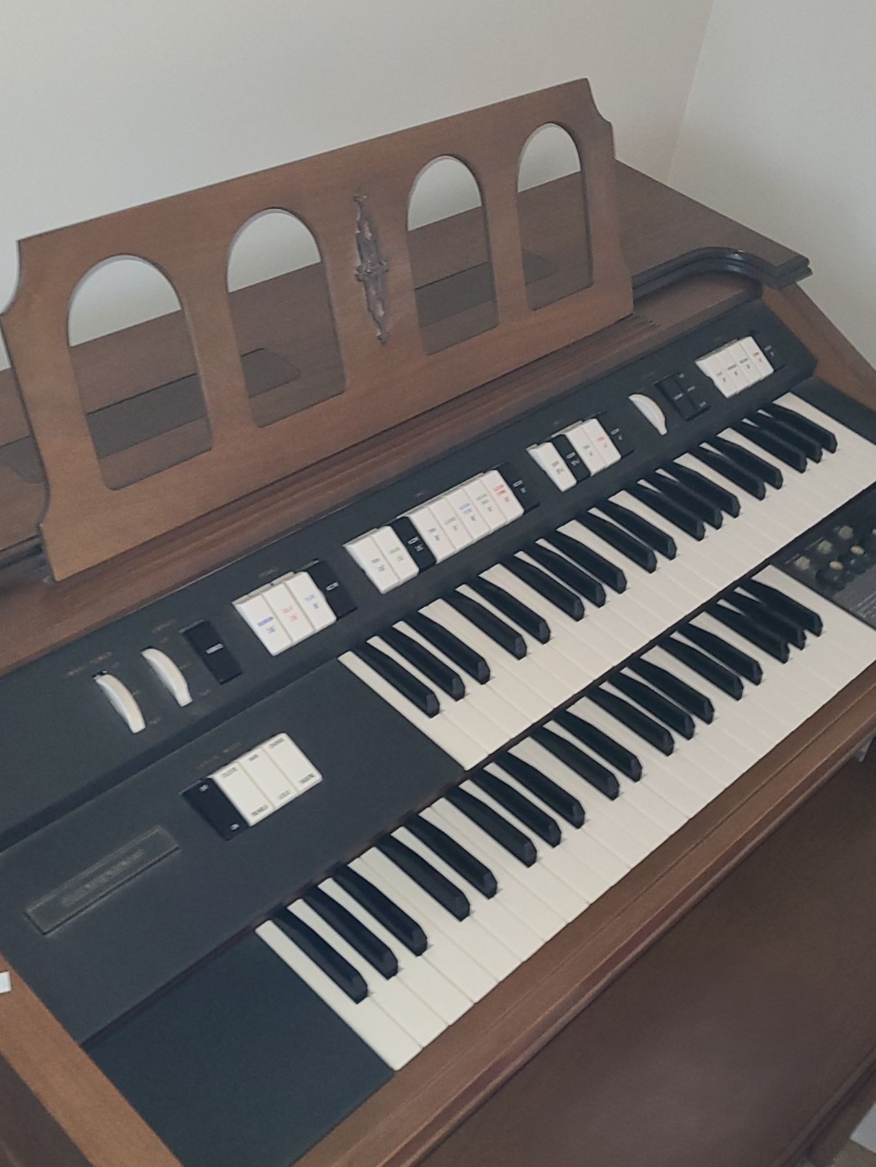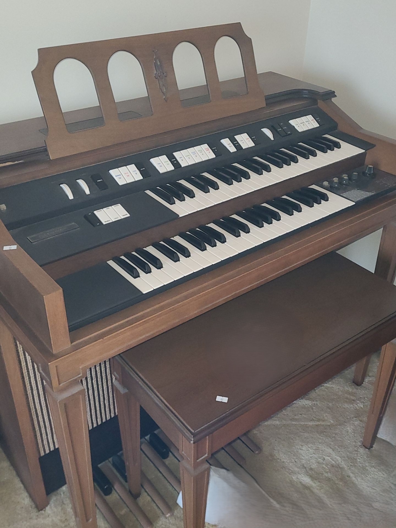 Electrohome Rhythm King Organ 42.5 W, 24 D, 36 T (Plus Music Sheet Stand), Bench 28 W, 13 D, 22 T