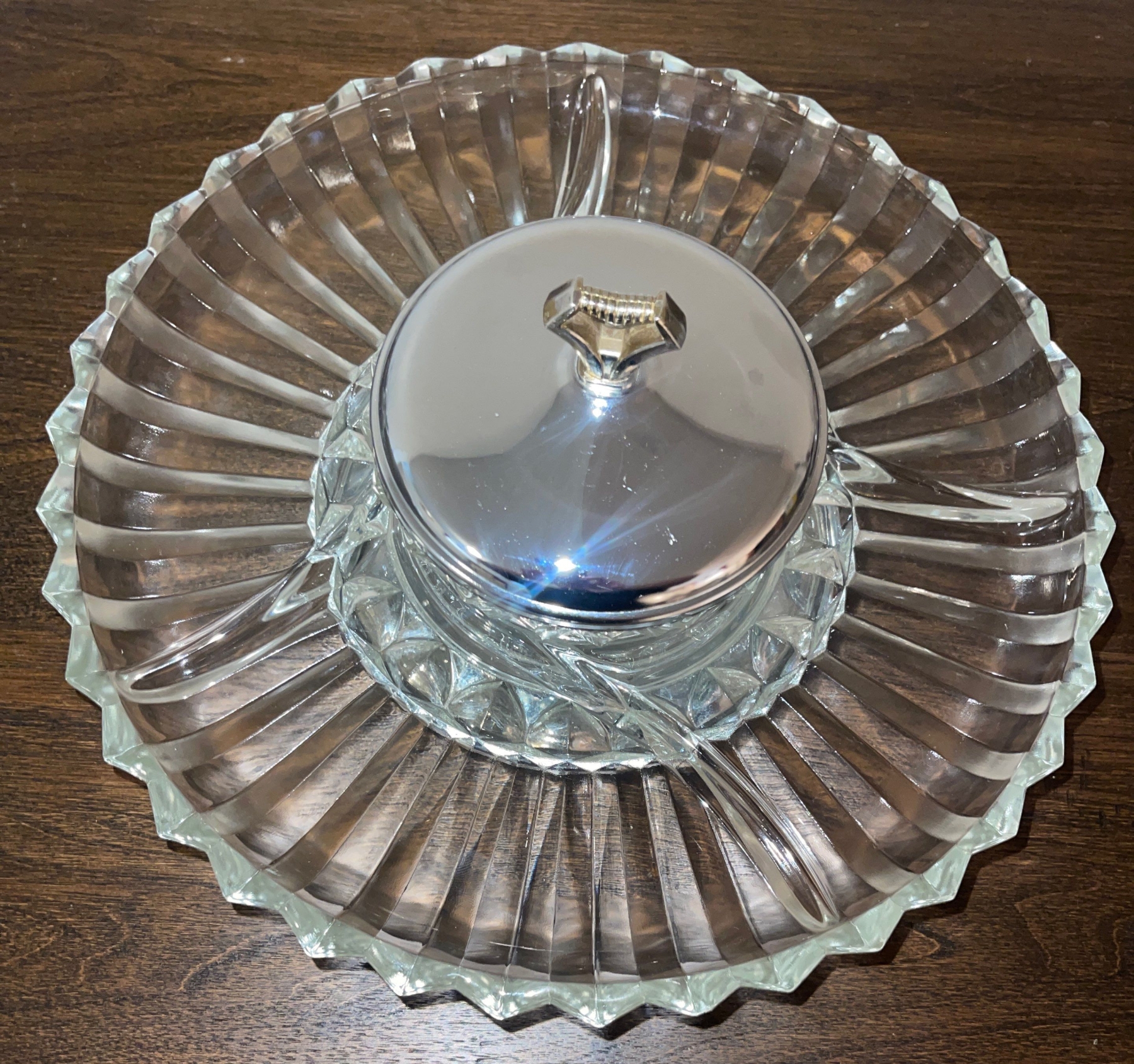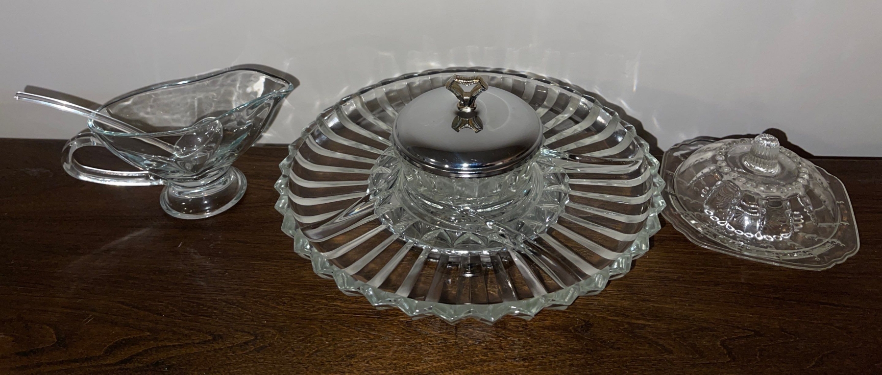 Elegant Crystal Serving Ware - Gravy Boat Butter Keep & Party Platter 14W