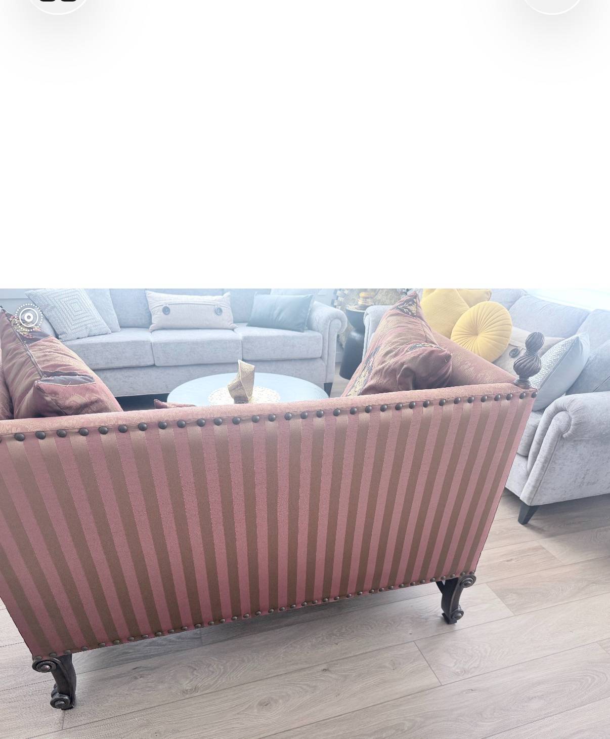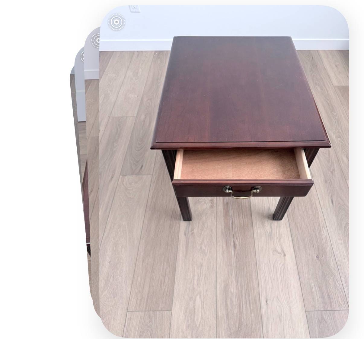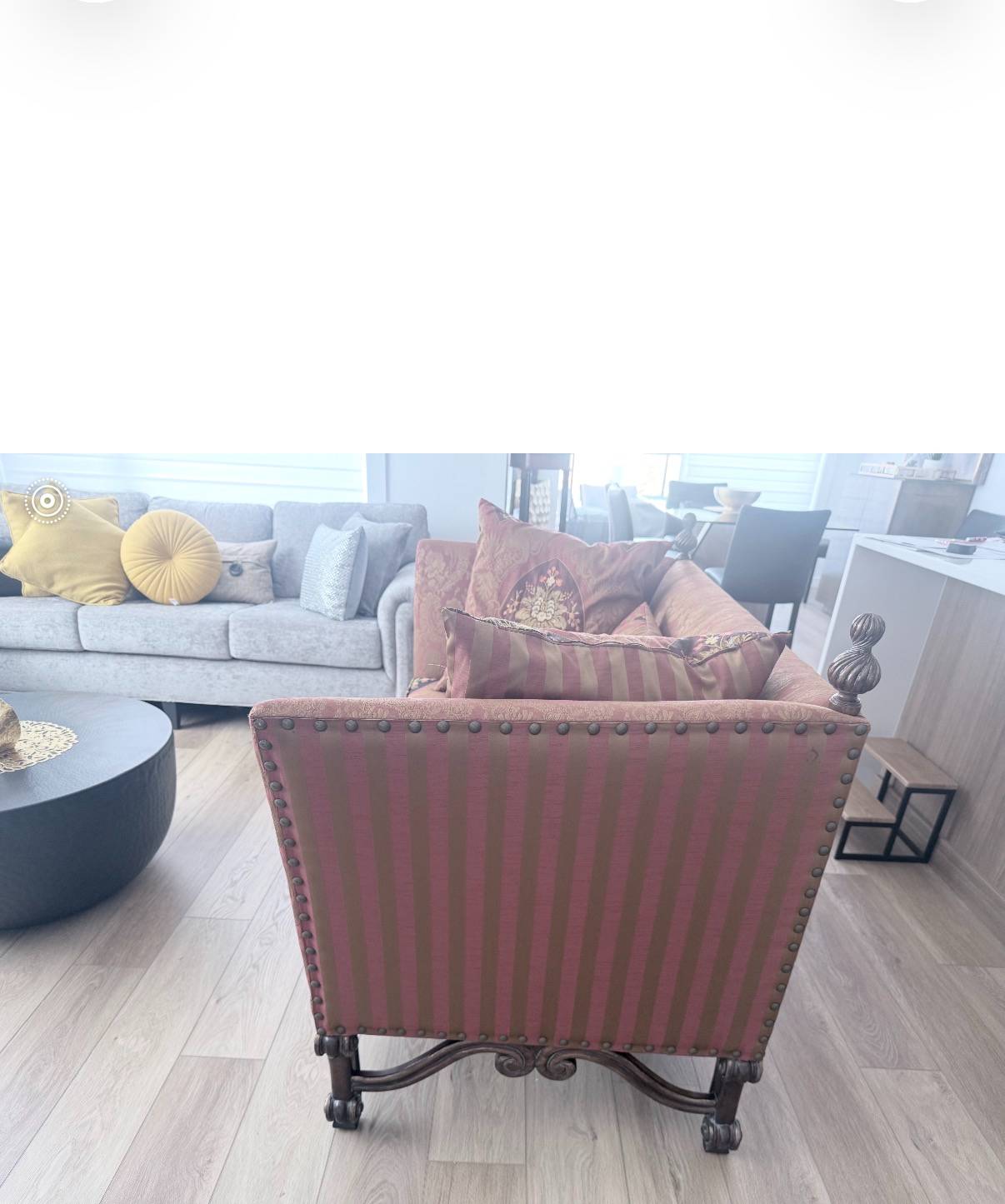 Combining comfort and classic design, this lot features a plush loveseat measuring 50.5‚" long and 30.5‚" wide, adorned with rich patterned upholstery and decorative throw pillows. The carved wooden frame adds a touch of timeless sophistication. Completing the set are two identical side tables, measuring 21‚Ä= W, 26‚Ä= D, and 23‚Ä= H, crafted from polished wood and equipped with drawers for additional storage.