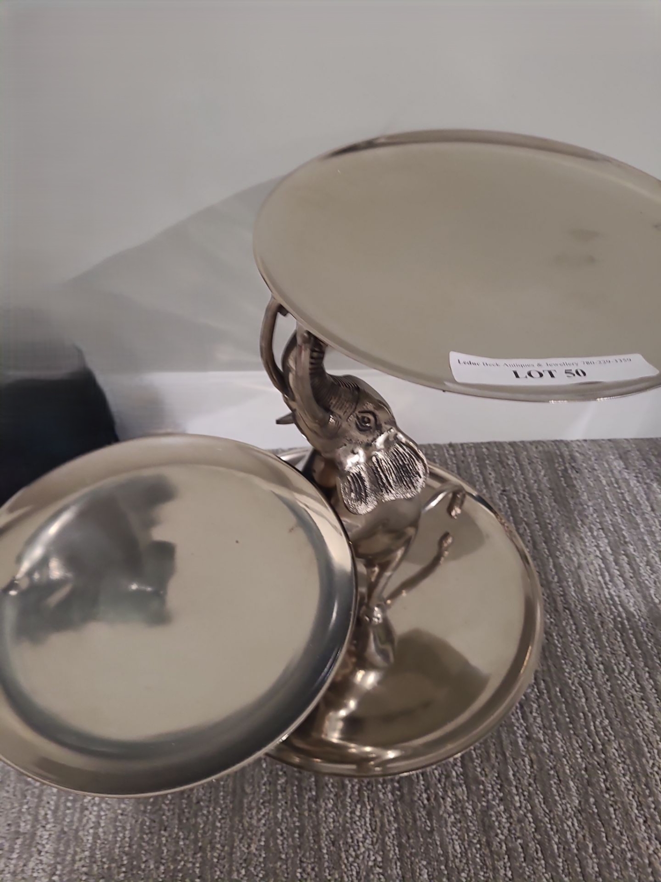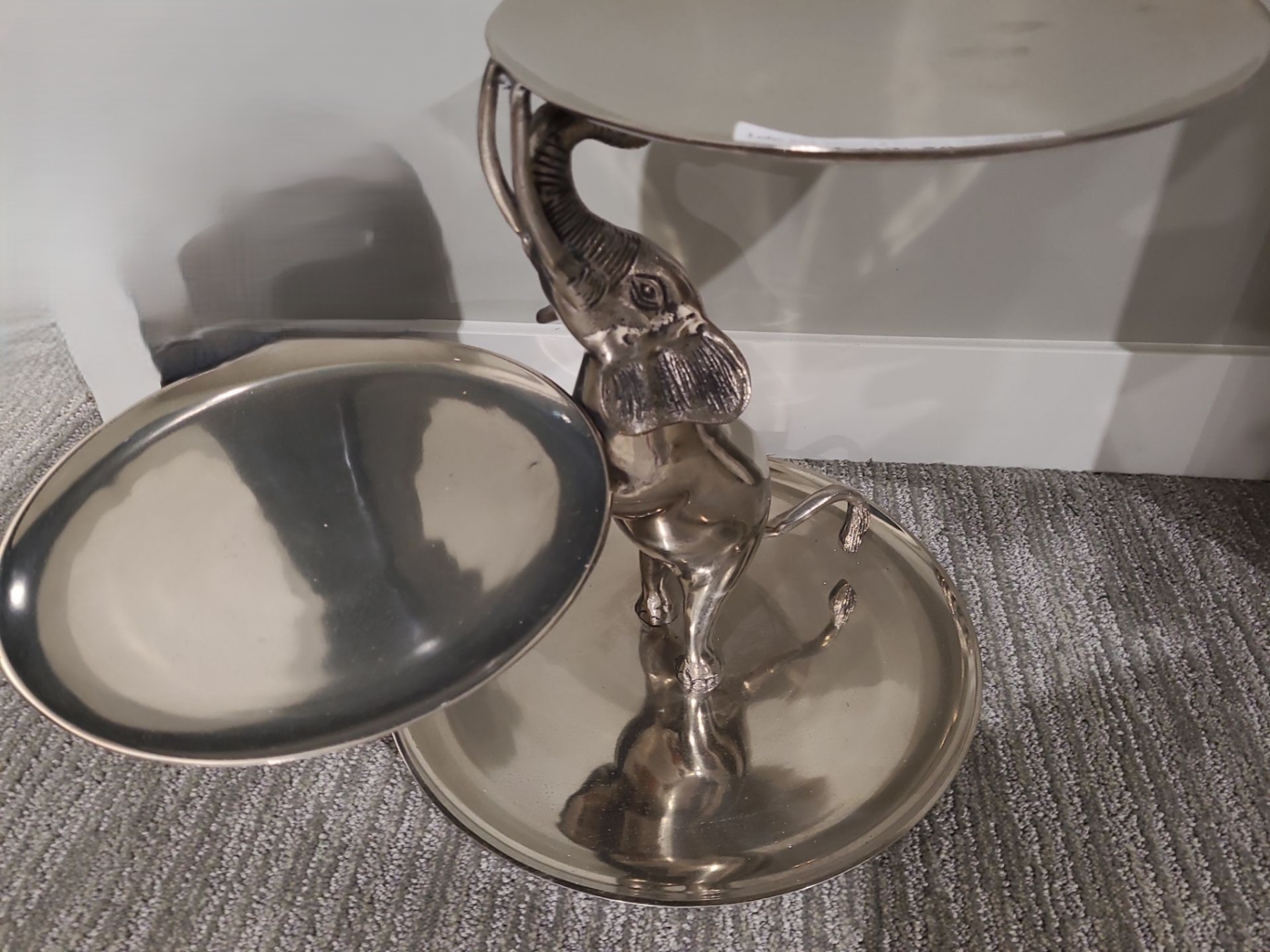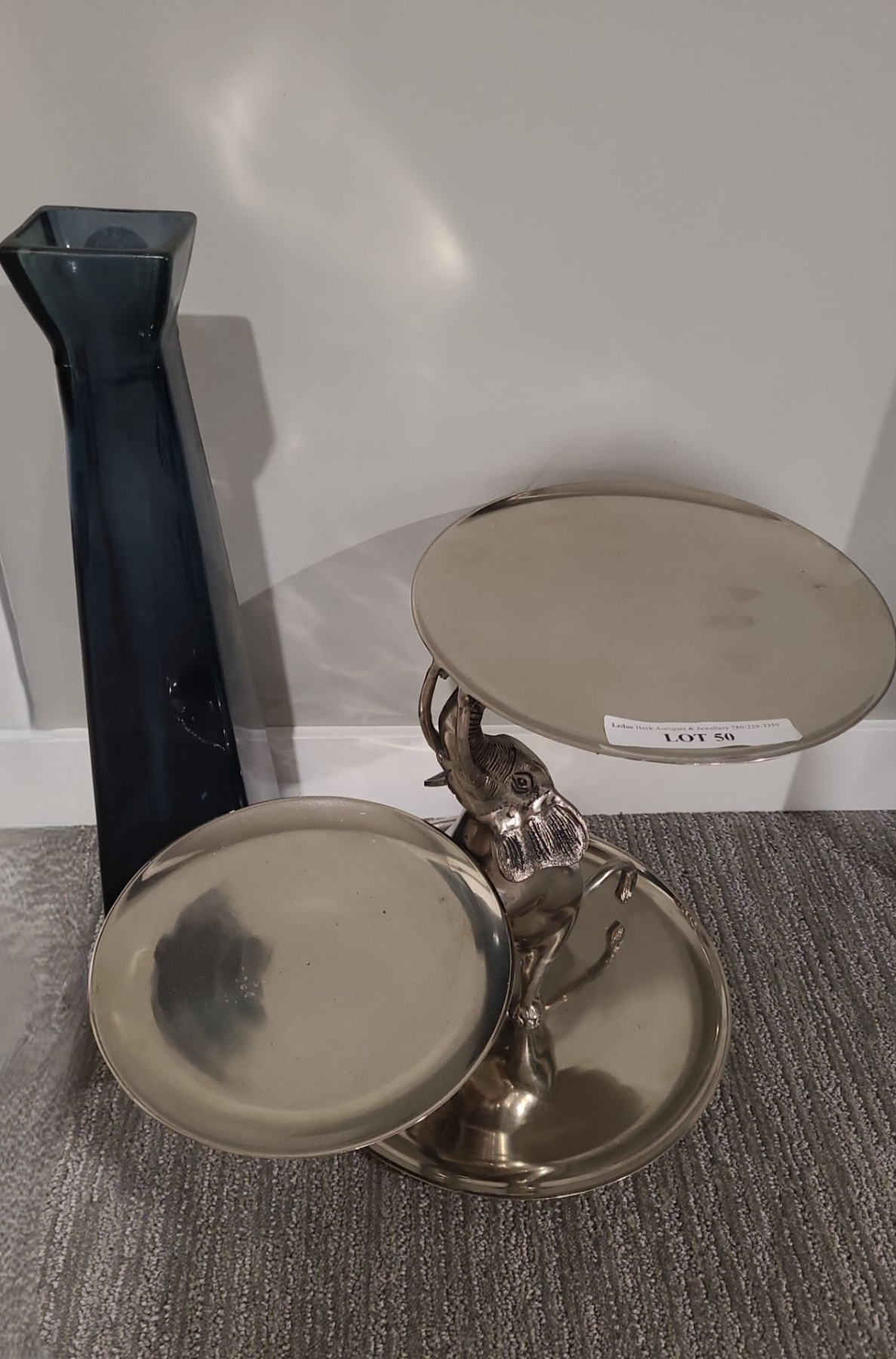 Elephant Metal Stand 13.5 w, 13.5 h and Recycled Glass Vase 21 h