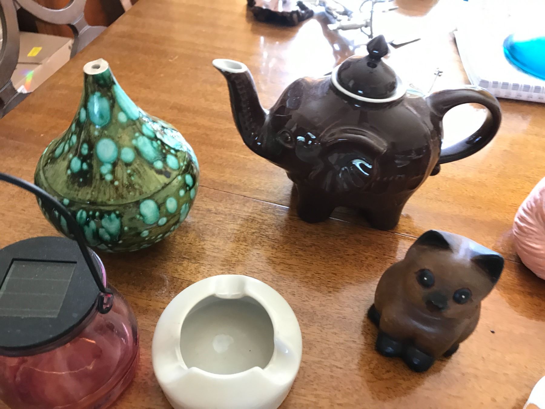 Elephant Teapot, Assorted Ashtrays , Cat/Fish Home Decor