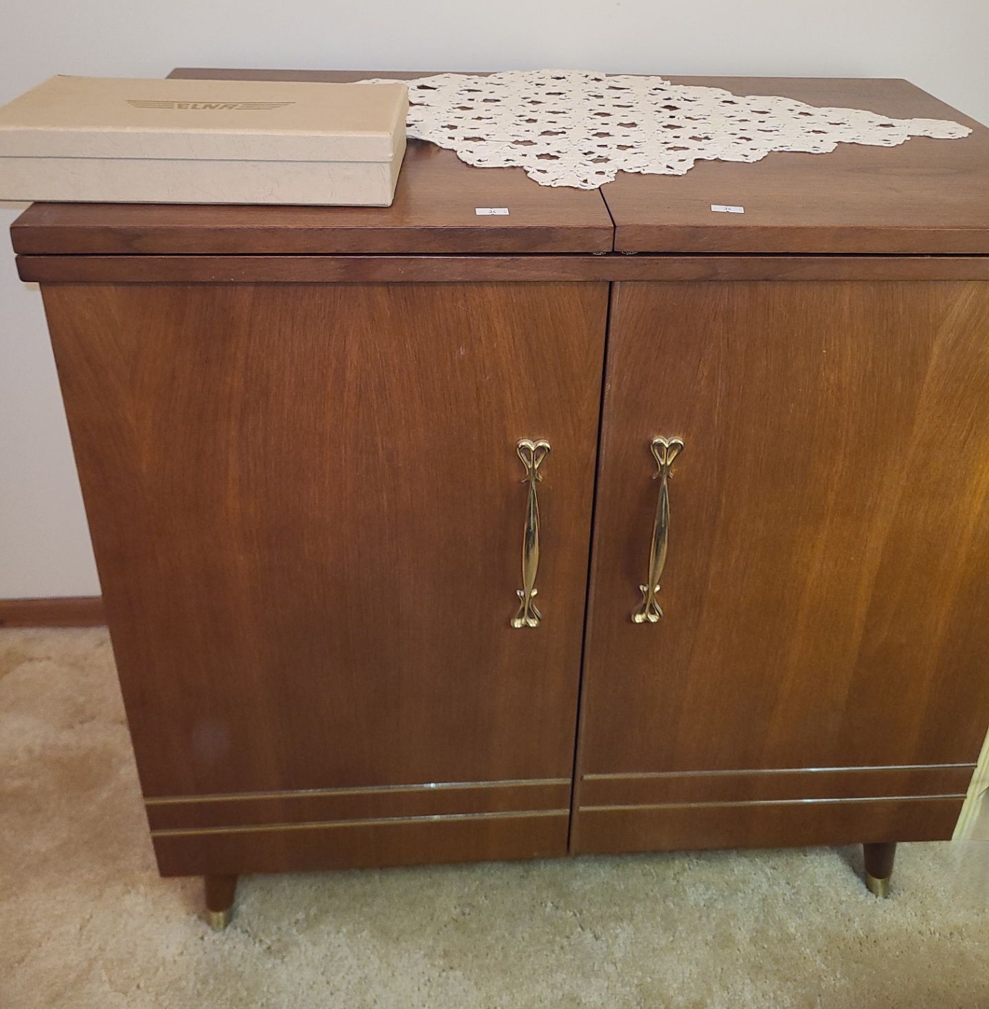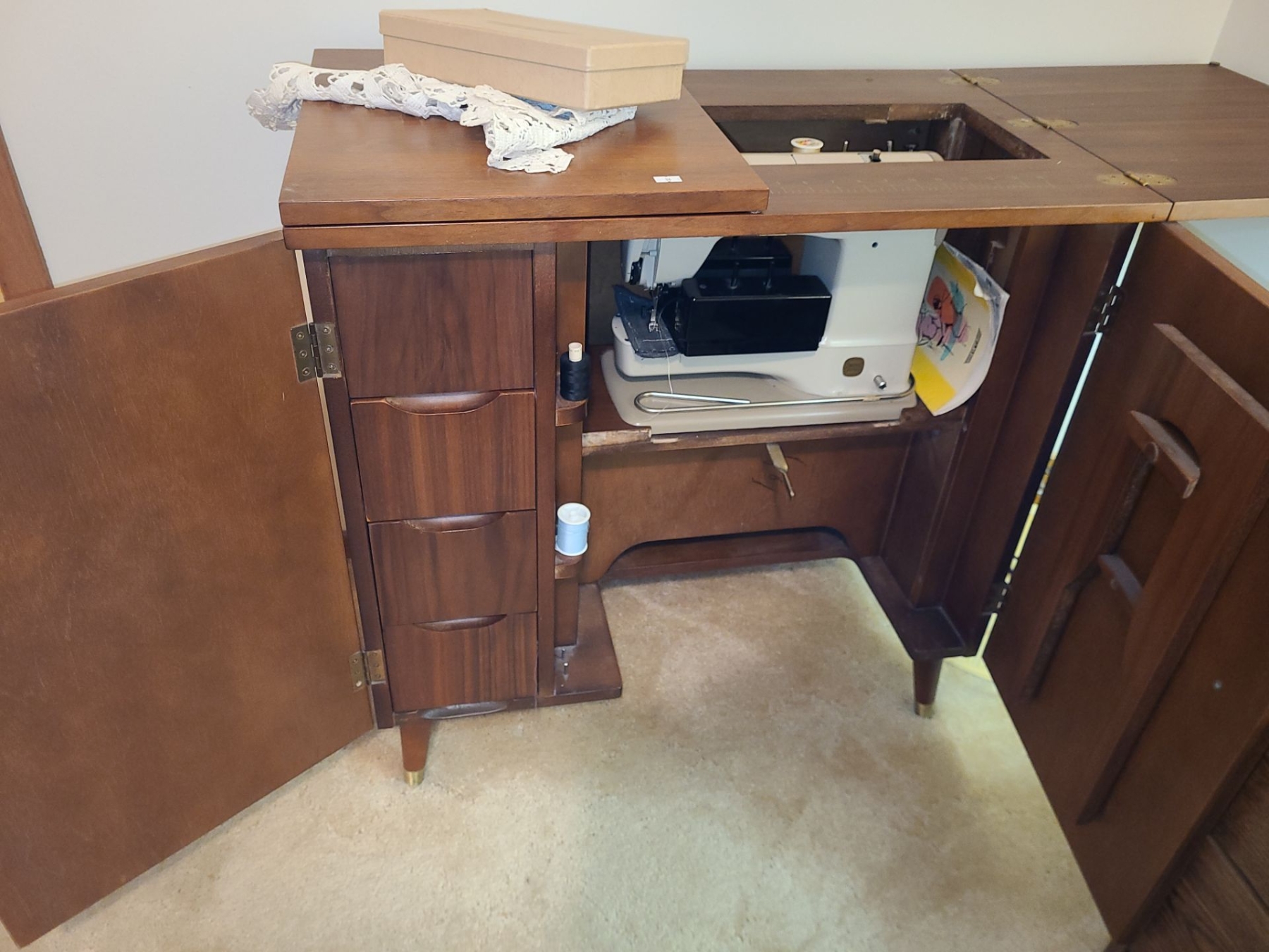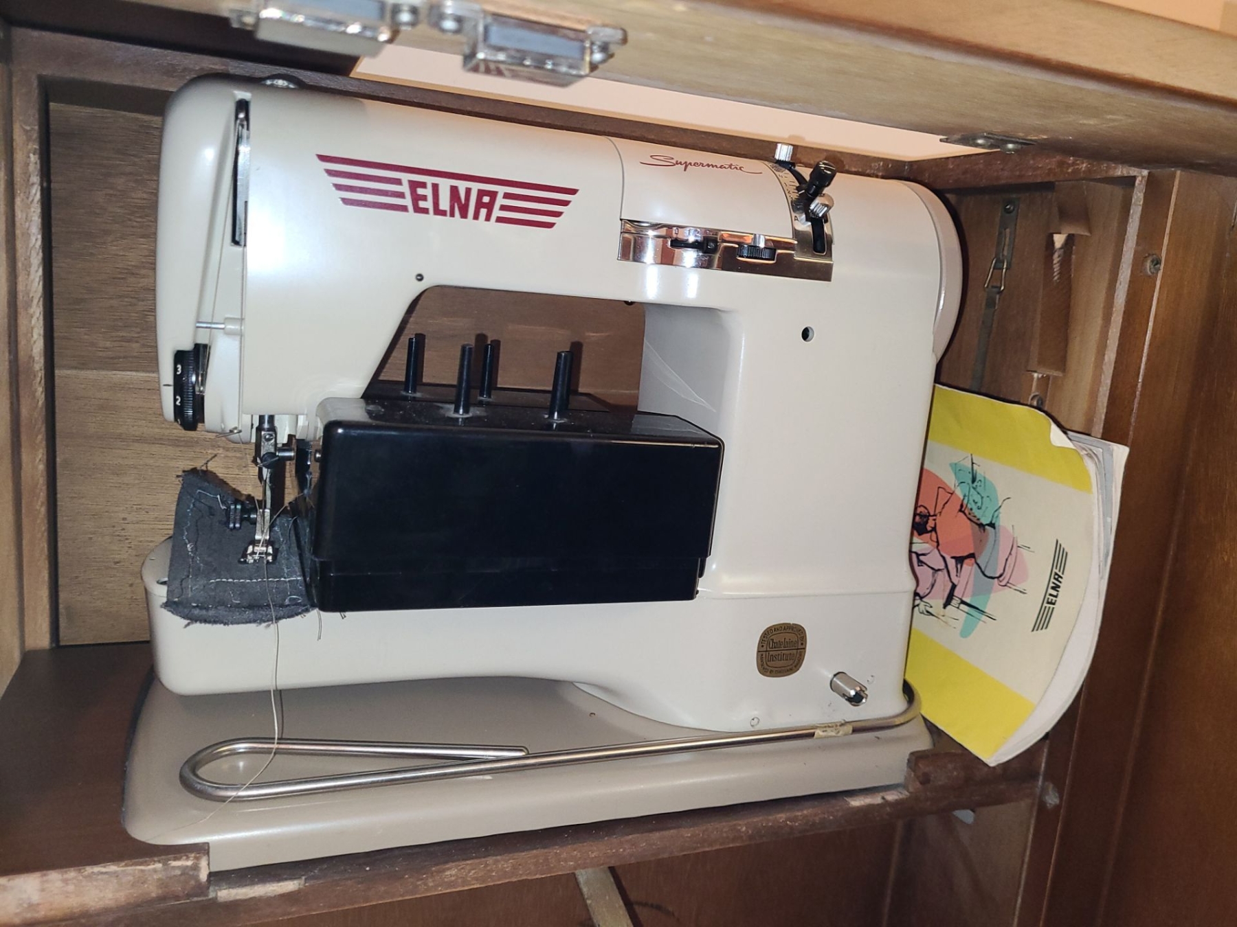 Elna Supermatic Sewing Machine w/ Sewing Cabinet, Very Heavy, Bring Assistance to Move