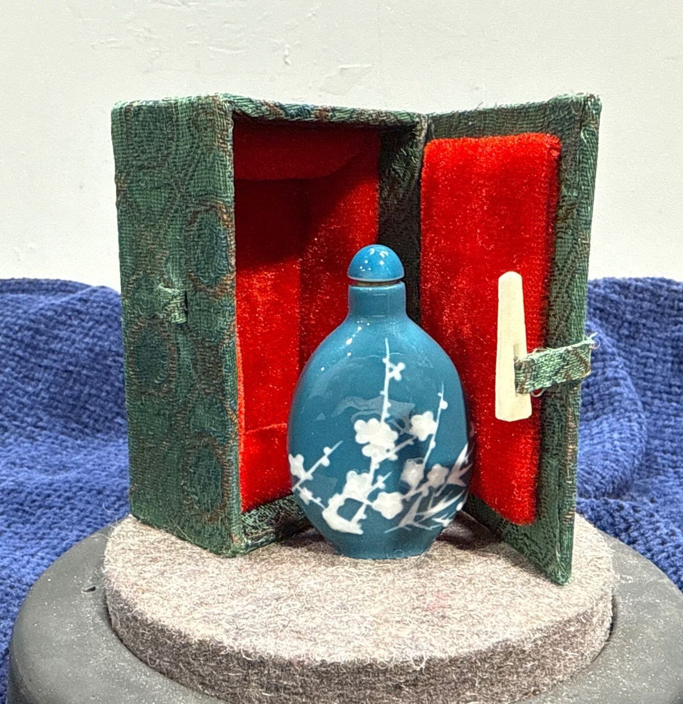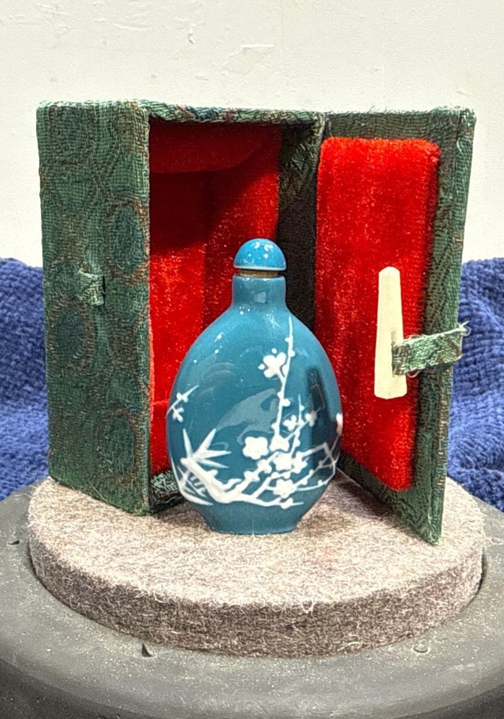 Embossed Blue Floral Snuff Bottle 2.5H