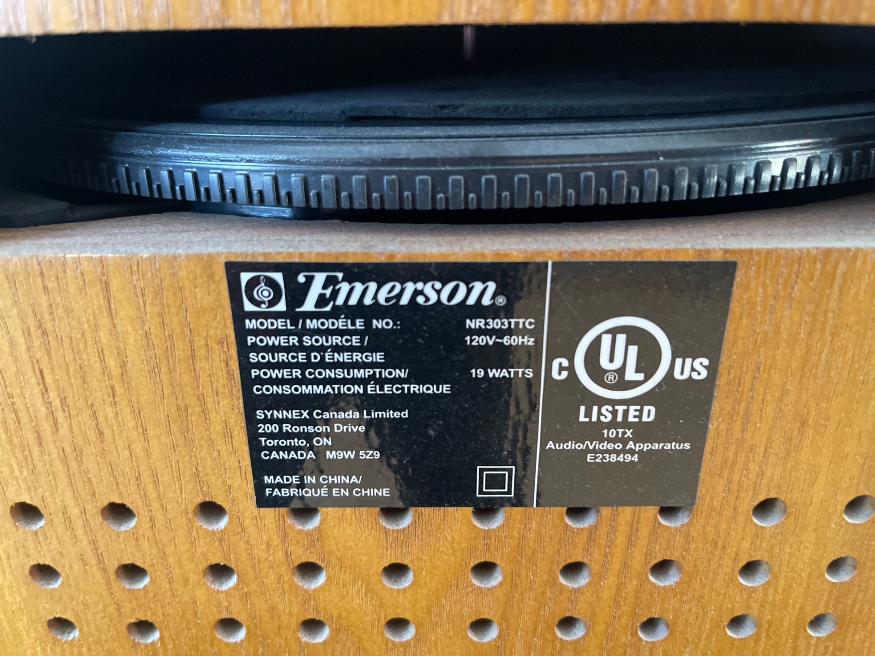 Emerson Heritage Series Mini Old Fashion Stereo System in Wood Cabinet ModelNo NR303TTC