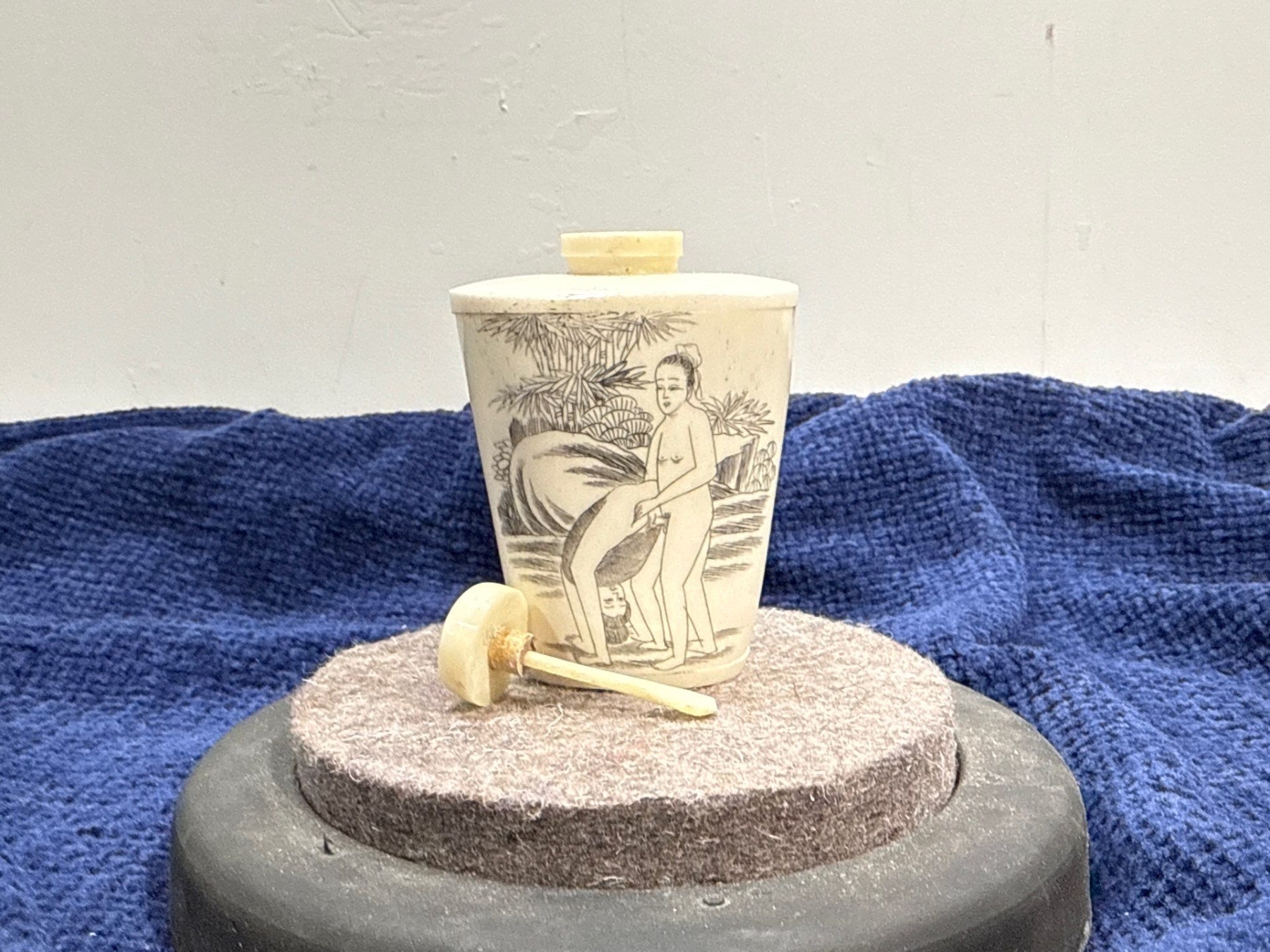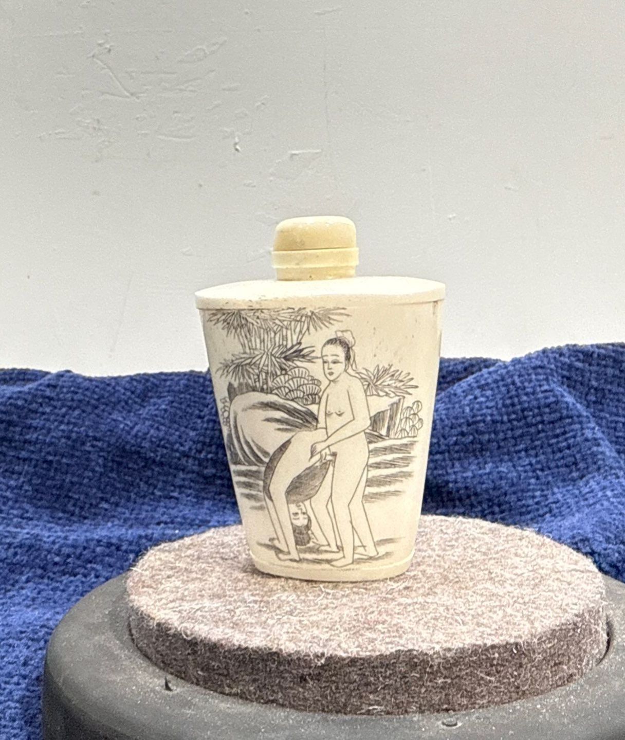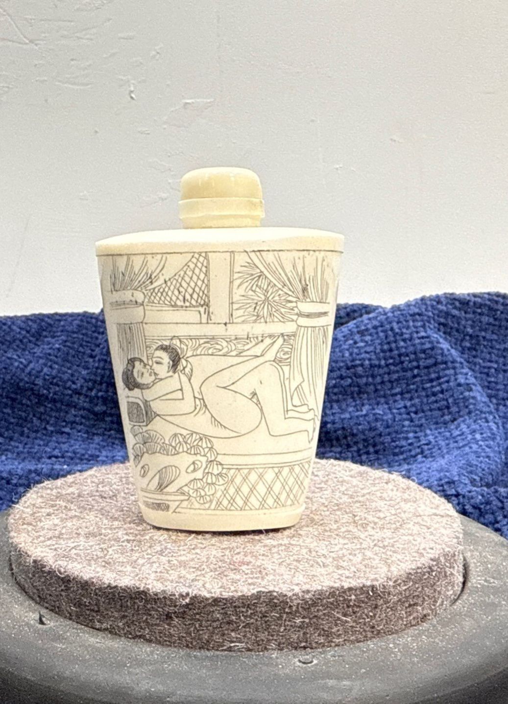 Erotic Scene Snuff Bottle with Spoon 2.5H