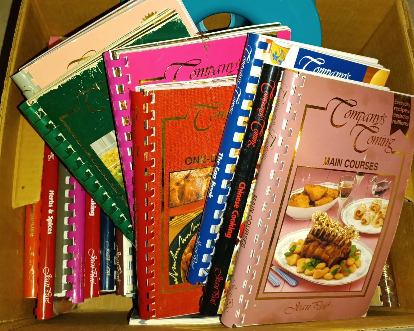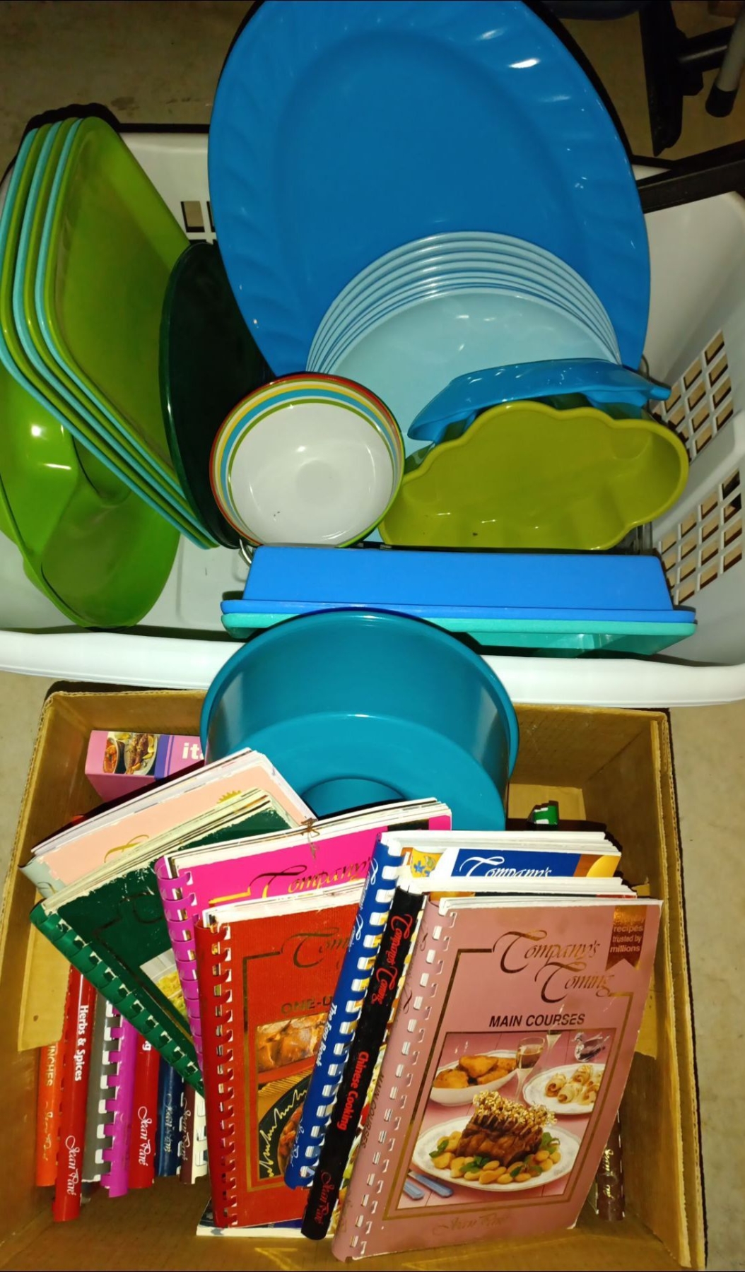 Everyone's Favorite Collection Of Company's Coming By Jean Pare Cookbooks w/Blue & Green Picnic Plates