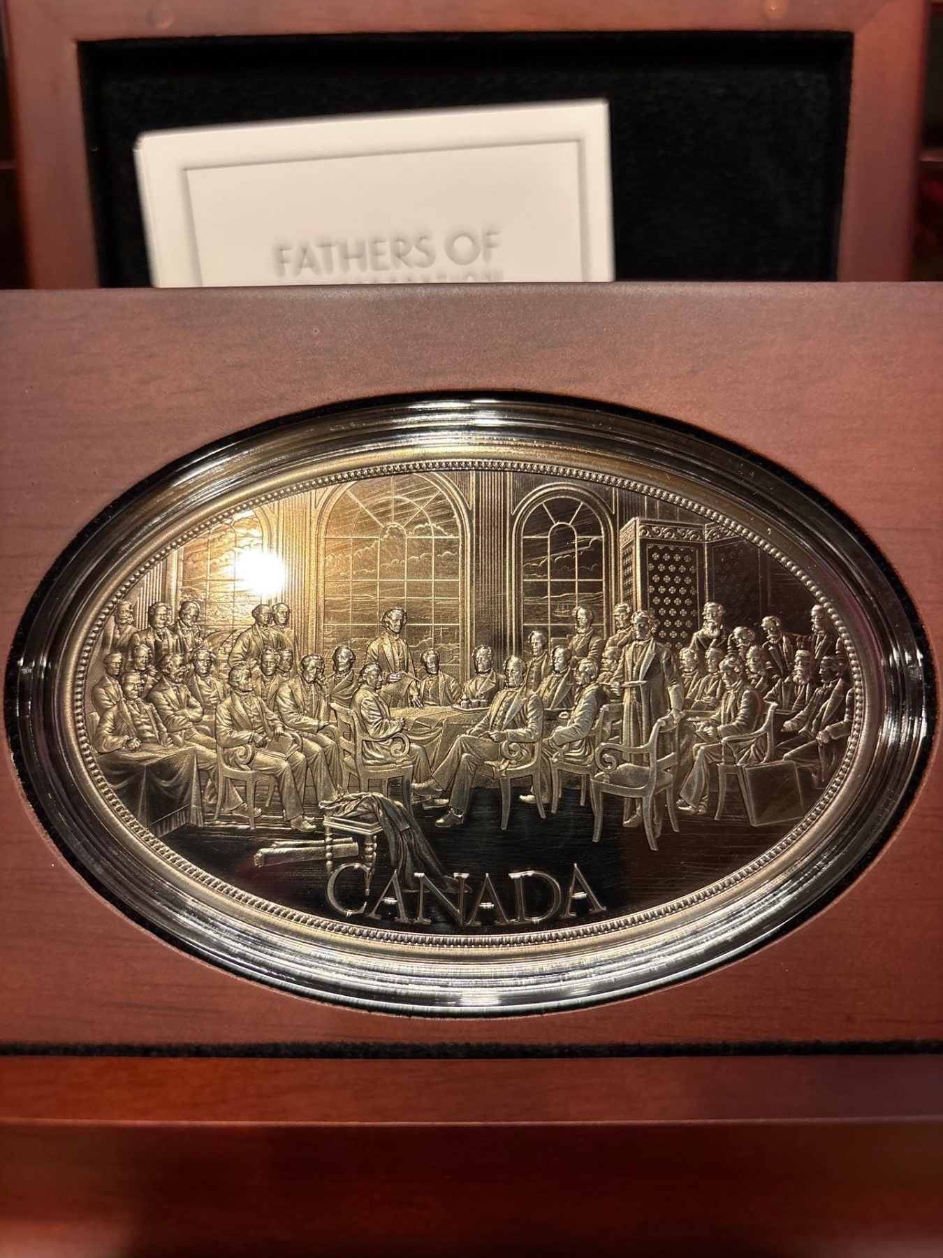 FATHERS OF CONFEDERATION CANADIAN 5 OZ ANTIQUE FINISH FINE SILVER MEDAL – CANADIAN HERITAGE MINT