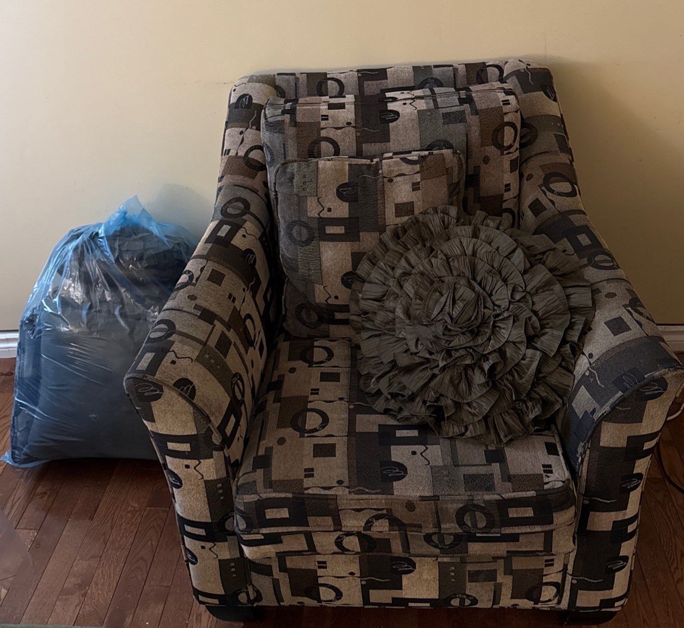 Fabric Single Chair Whittaker Designs w/ Bag Full of Decorative Pillows - Chair is 34W, 36D, 36T