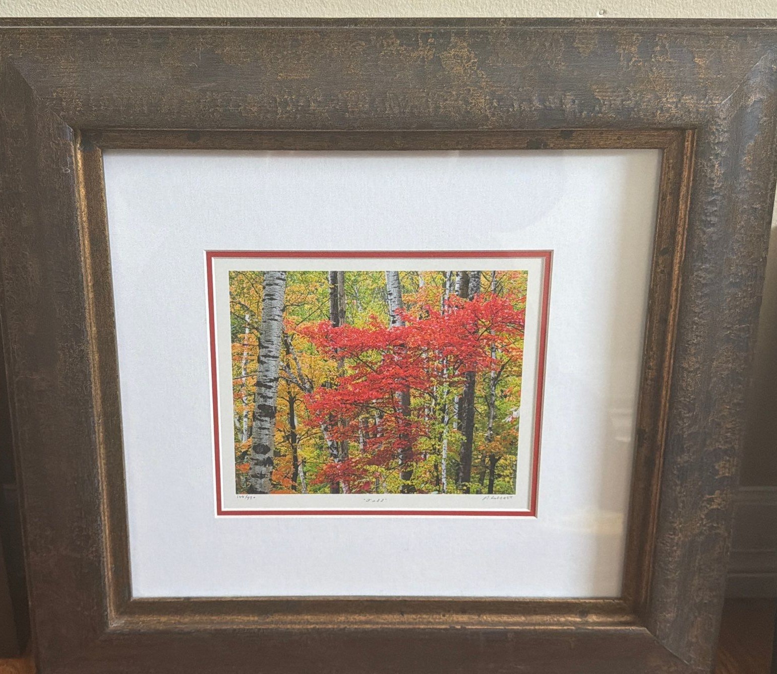 "Fall" , Artist: Illegible, 100/950 , 20.5 X 19 Framed Under Glass
