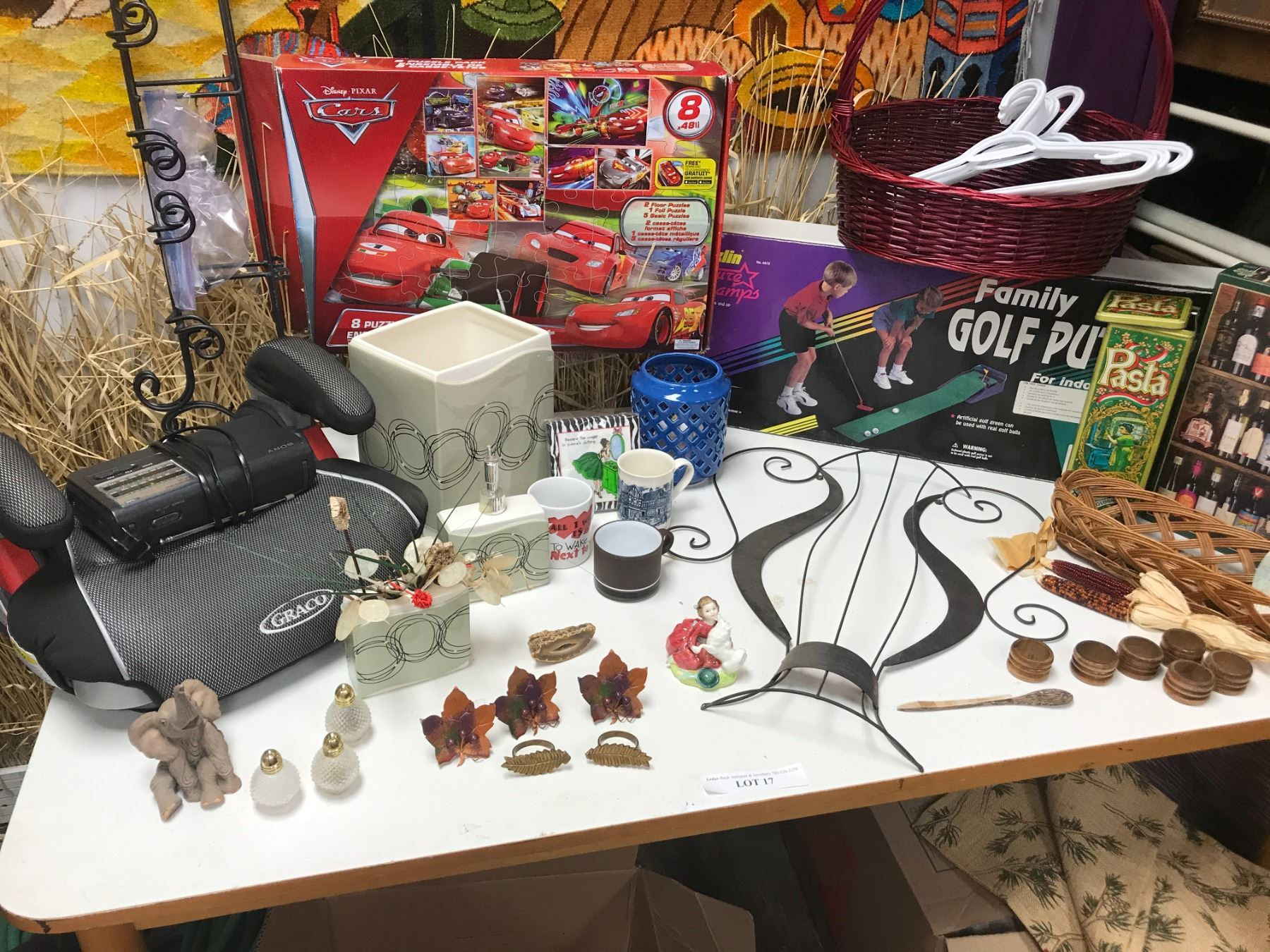 Family Golf Putter, Disney Pixar Cars Puzzle, Wine Puzzle, Baby Seat, Sony Radio, Napkin Holder, 2 Baskets, Goose Trivet, Ceramic Bathroom Set, Mugs, Candle Holder, Gemstone Spheres, Metal Shelves, Decorative Elephant, Royal Dalton Home Again Figurine