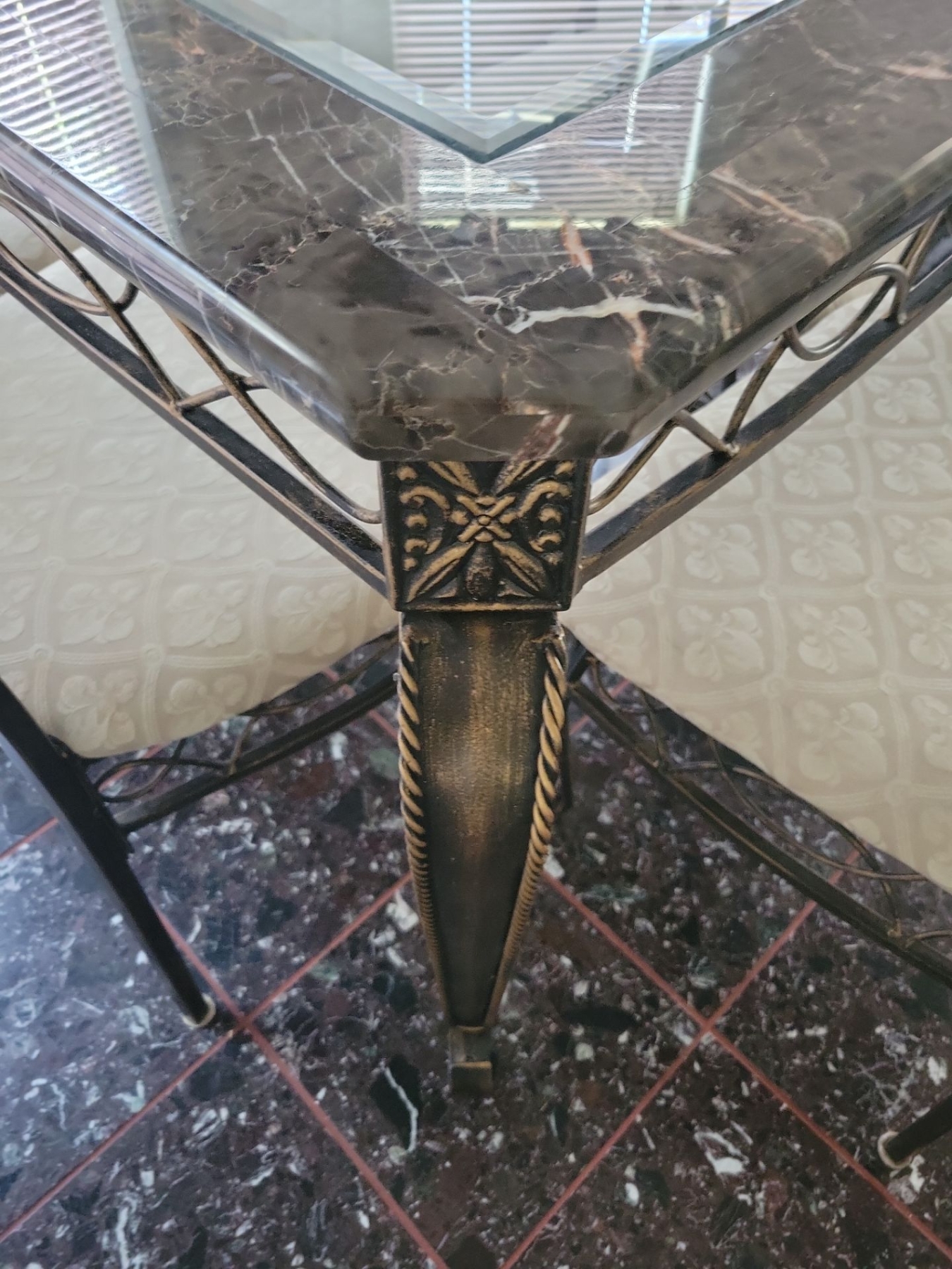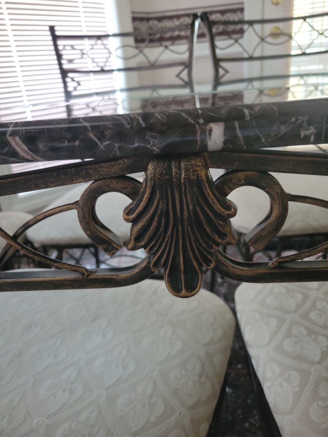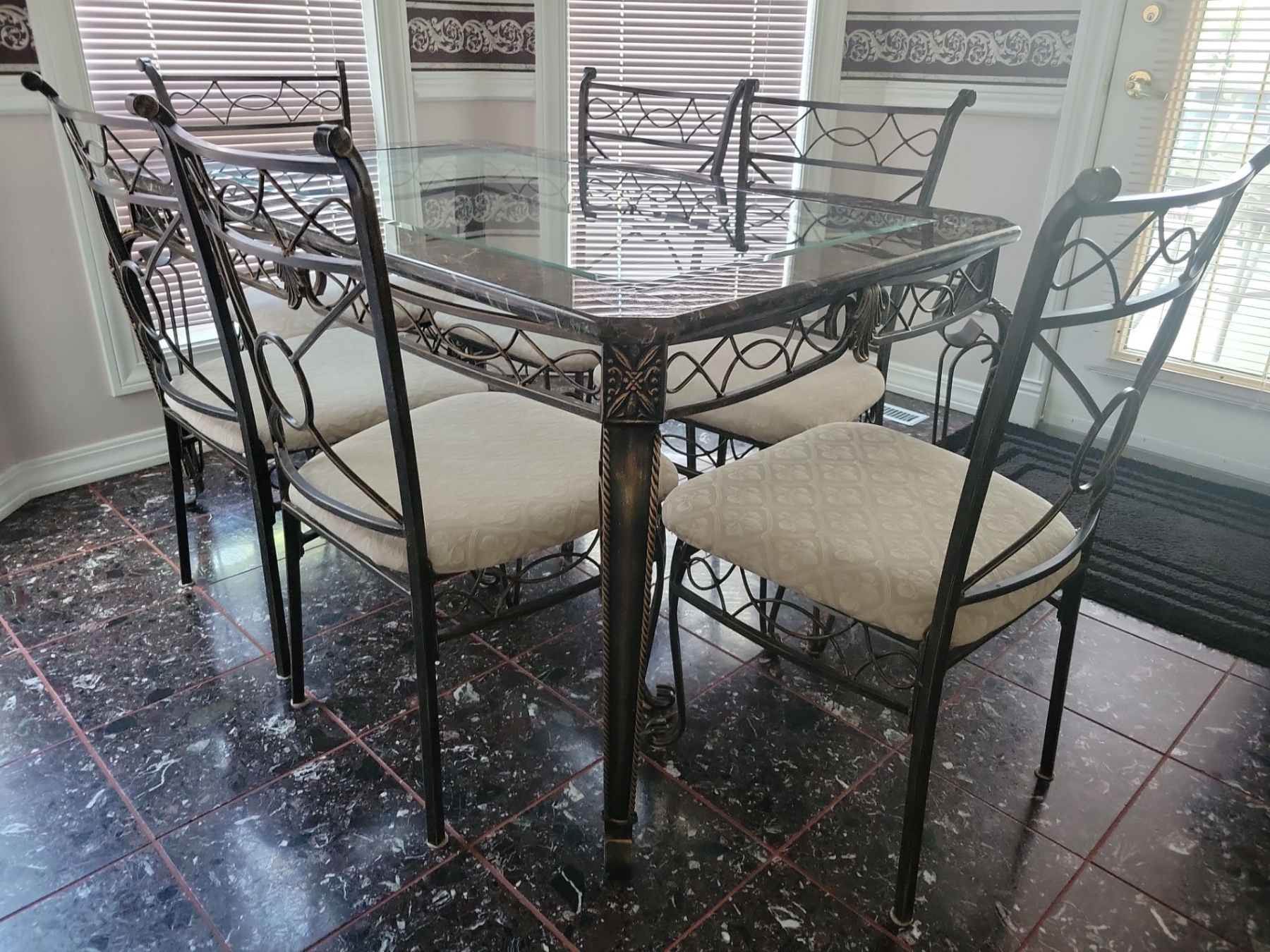 Fancy Metal & Glass Kitchen Table w/Six Cushioned Chairs 61"x 36"x 33"tall