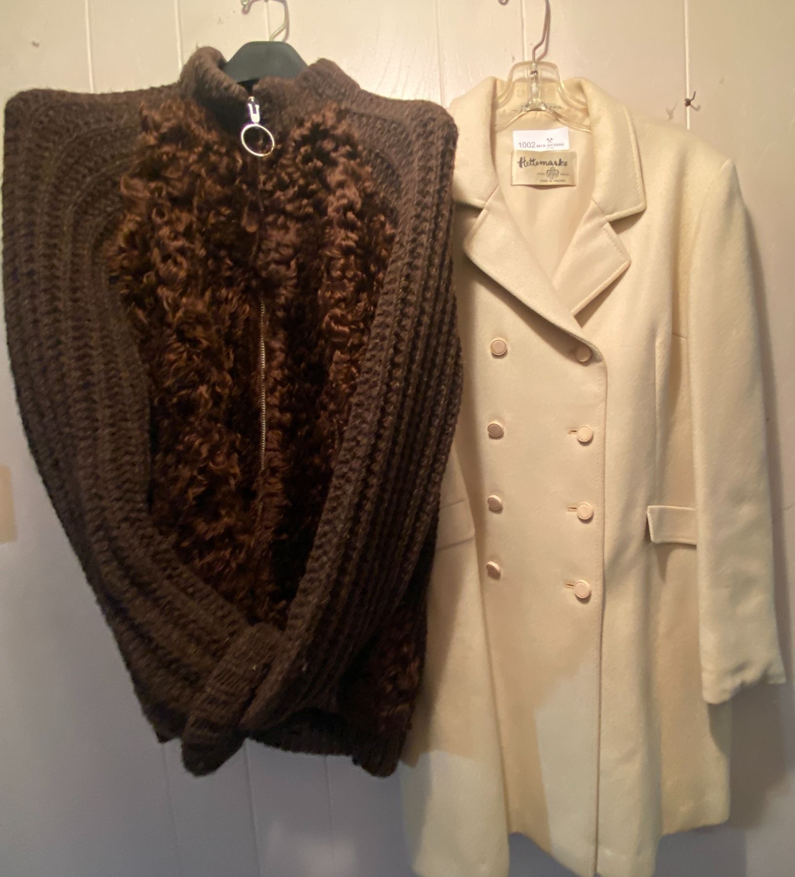 Faux Fur Sweater & White Peacoat Blazer Womans Large