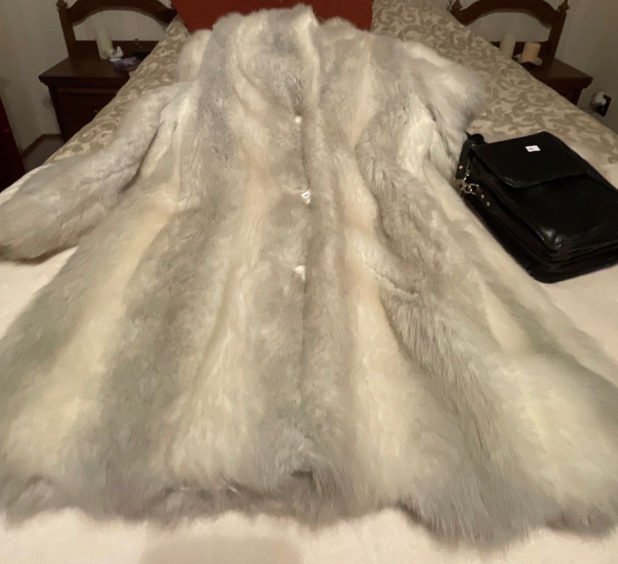 Faux Fur Winter Outerwear w/ Super Soft Leather Satchel Size XL