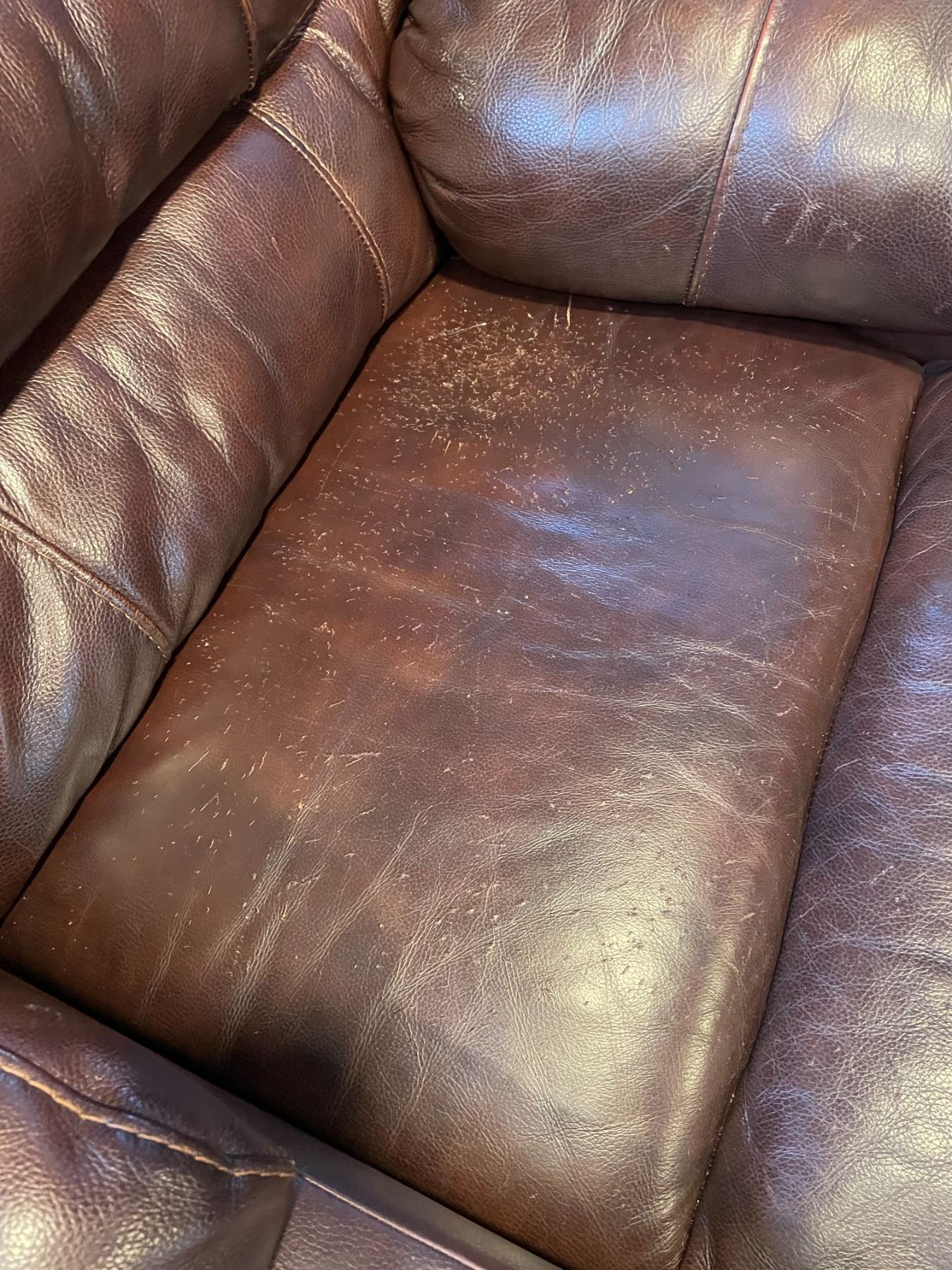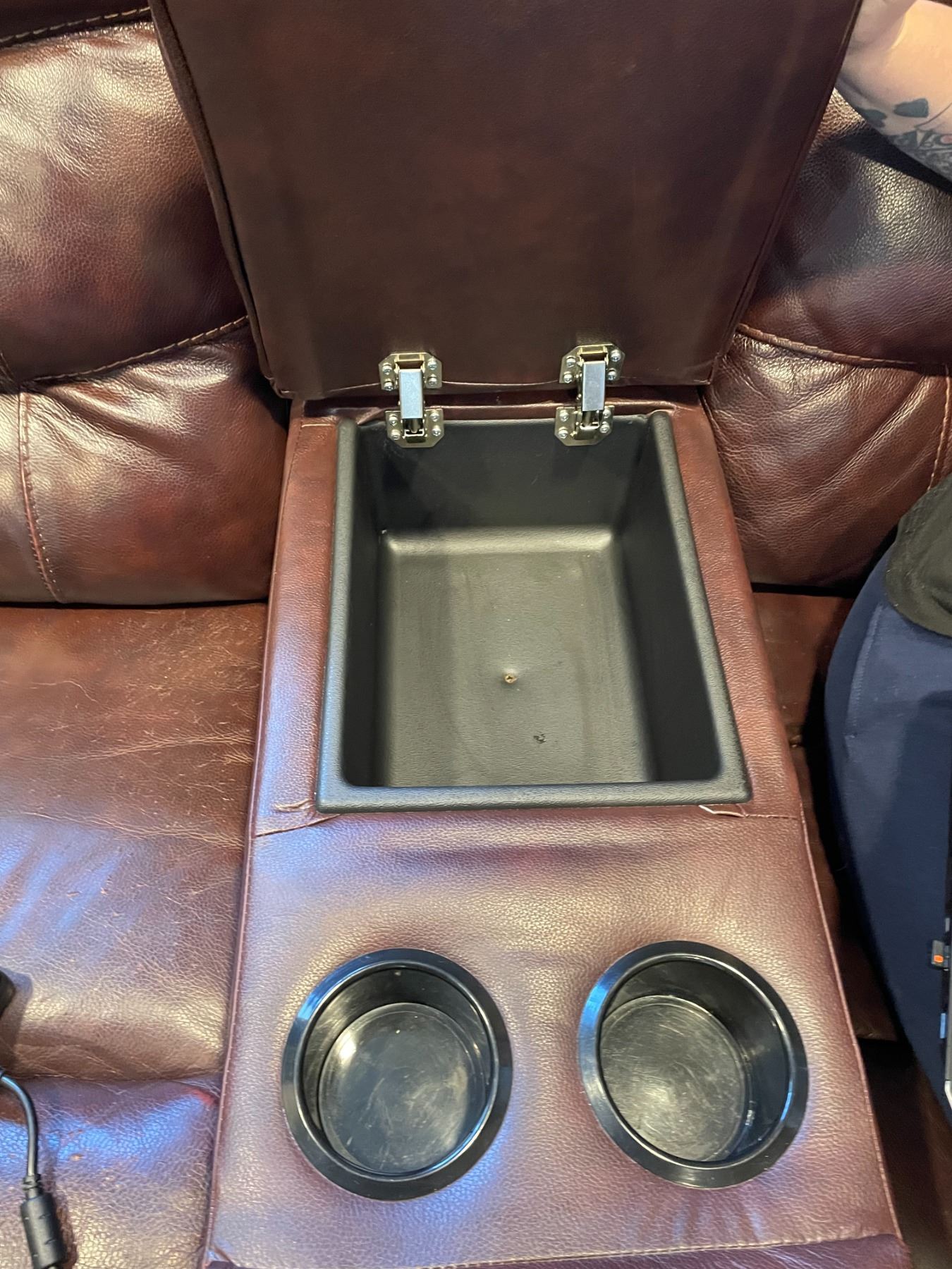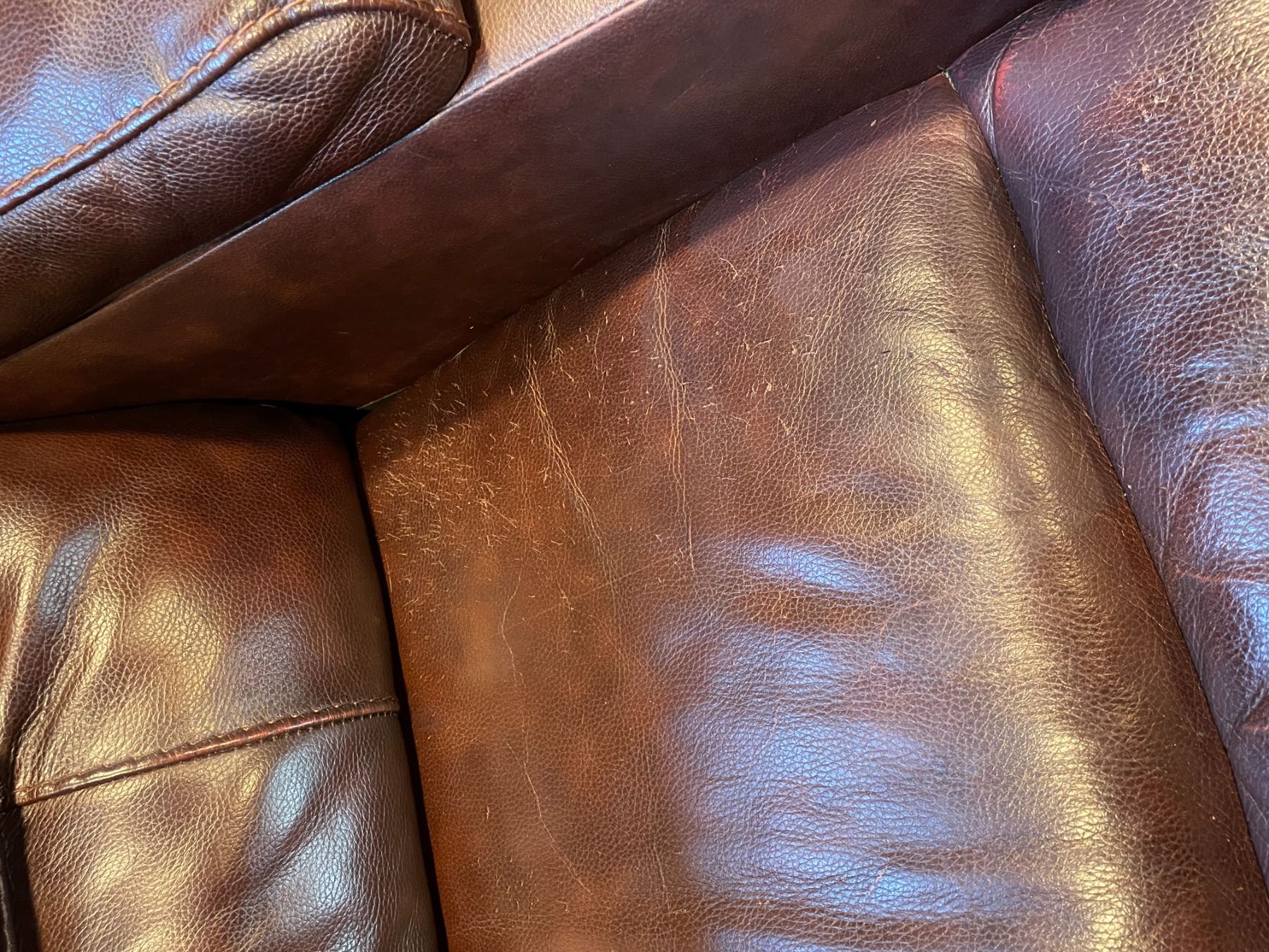 Faux Leather Loveseat Recliner (Brown) with Center Console (some minor damage)
