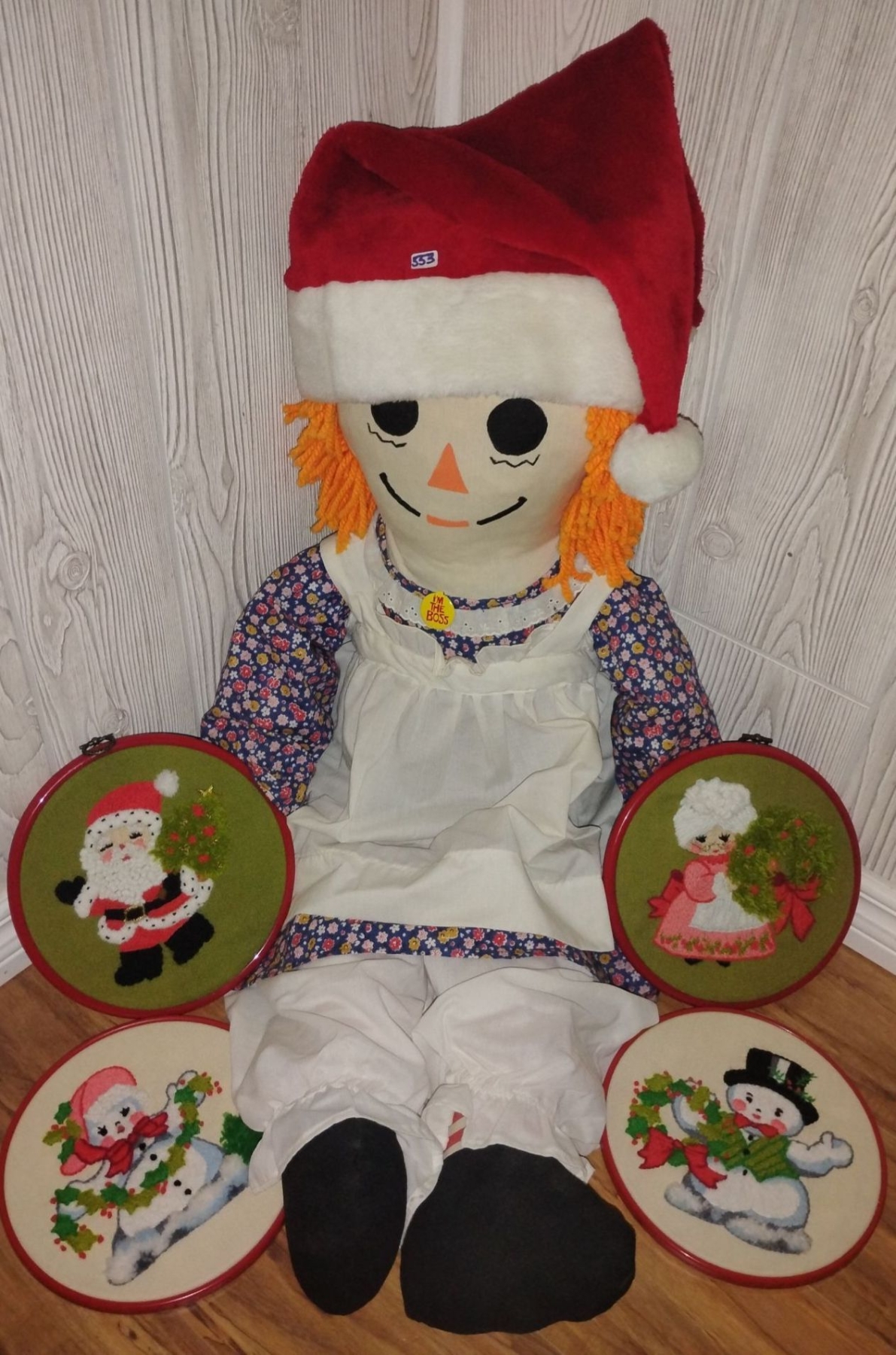 Festive Raggetty Ann Doll 42T w/ Embroidered Holiday Wall Hangers