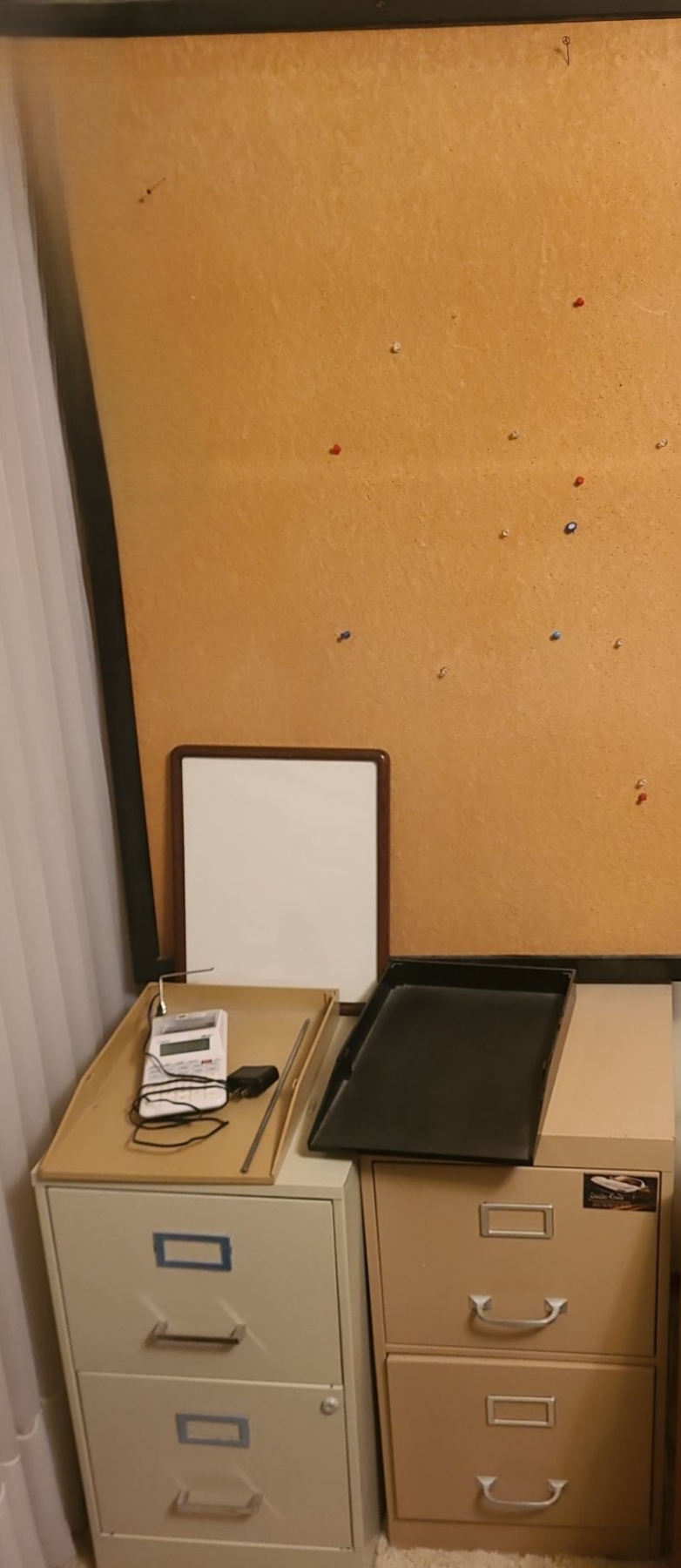 File Cabinets- Beige 14 W, 20 D, 26 T, Cole 15 W, 18 D, 28 T, Bulletin Board 34 W, 51 T and More!