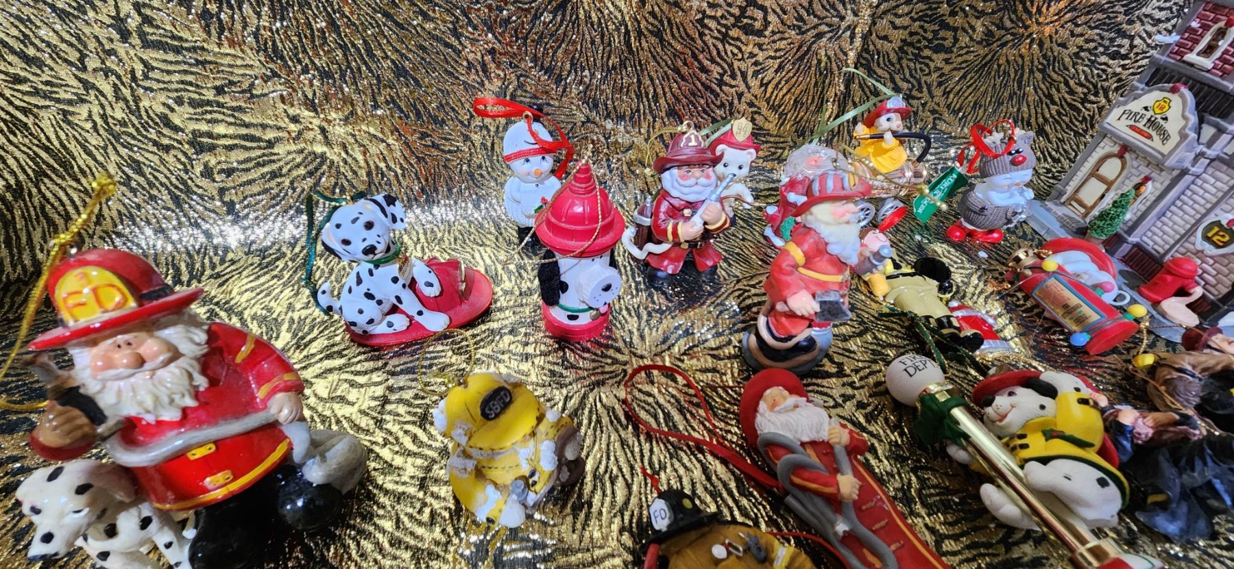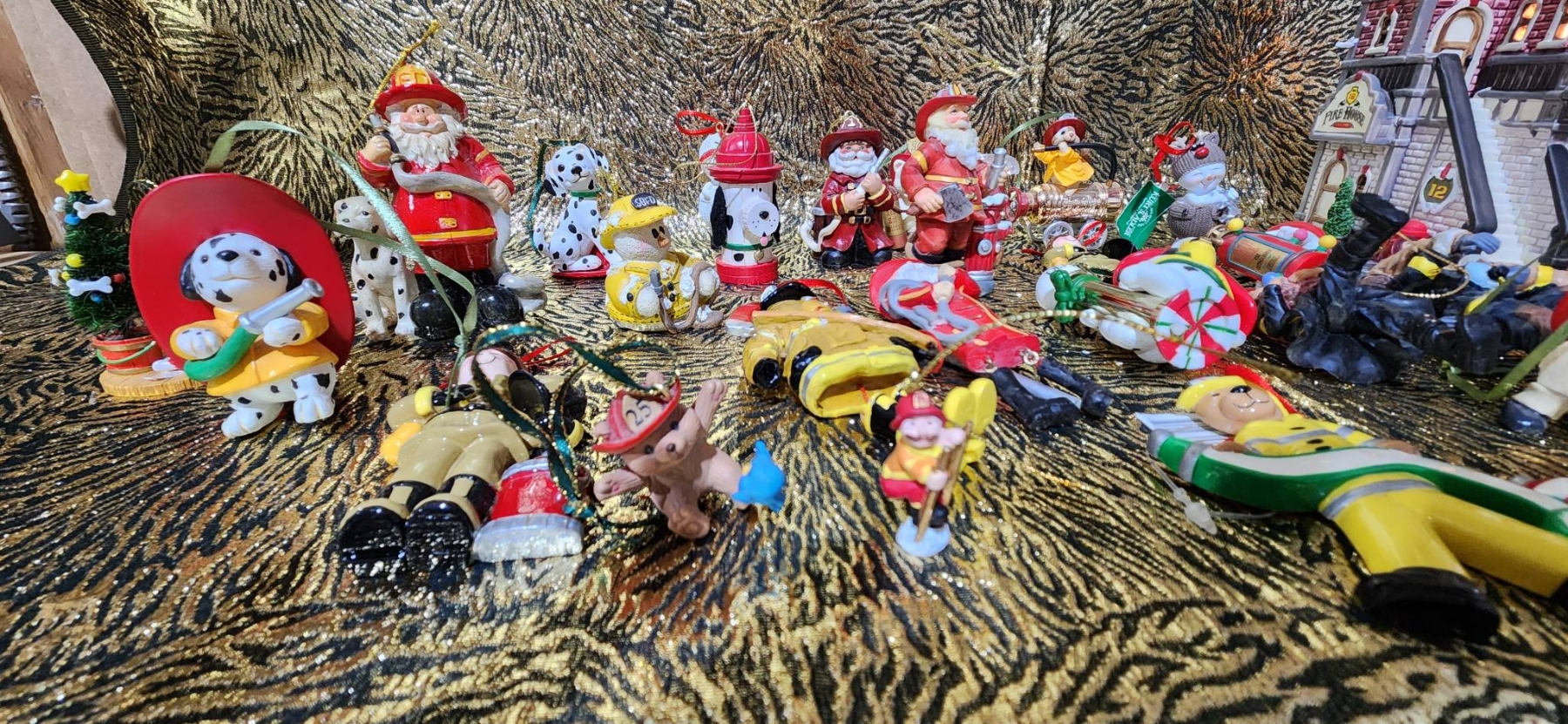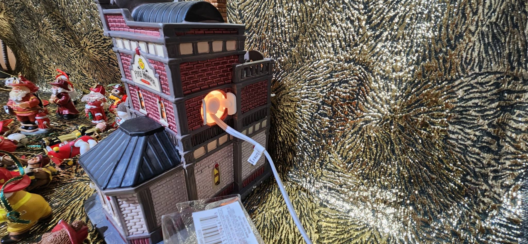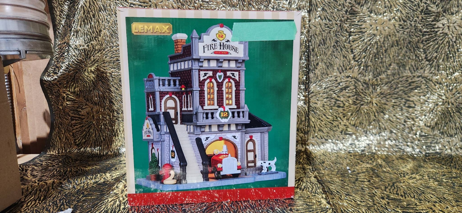 This engaging set features a detailed fire station light-up display measuring approximately 10 inches tall, 7 inches wide, and 7 inches deep. | | | Accompanied by an assortment of firehouse-themed figurines and decorations, including playful firefighter animals, Dalmatian figures, and fire trucks. | Produced by Lemax in 2014, the illuminated fire station is plug-in powered for a glowing, nostalgic charm. | The set offers countless pieces to bring warmth and character to any display.
