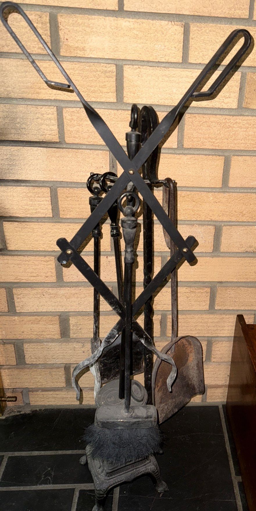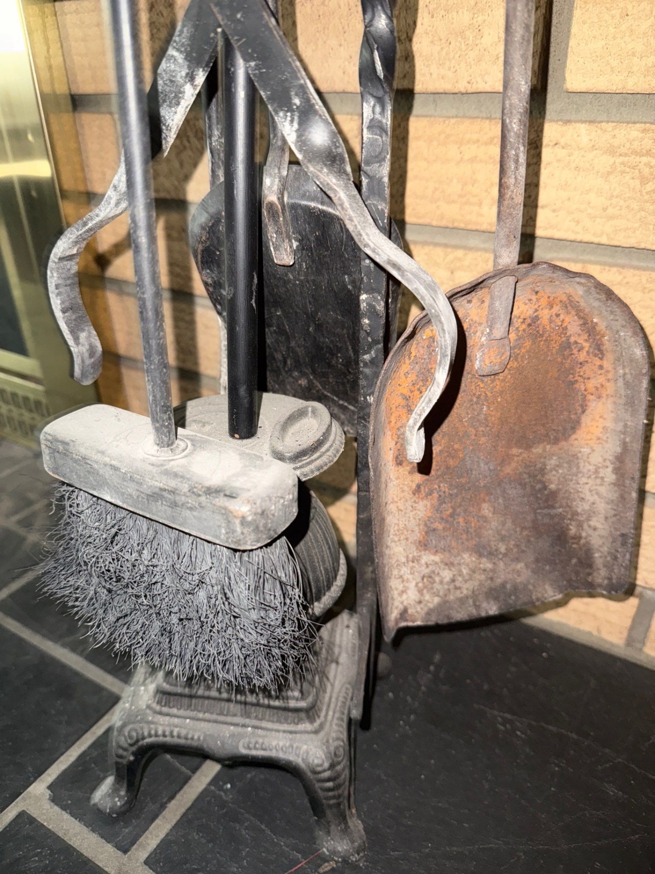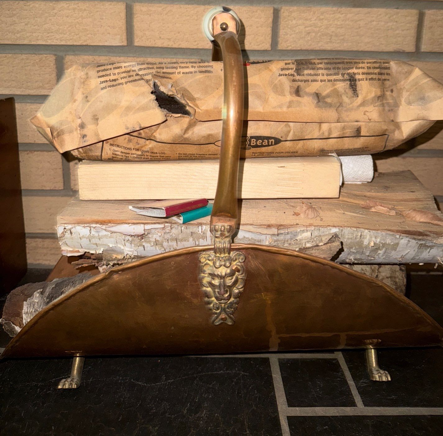 Fire Tending Tools, Brass Log Keep, & Antique Coal Scuttle