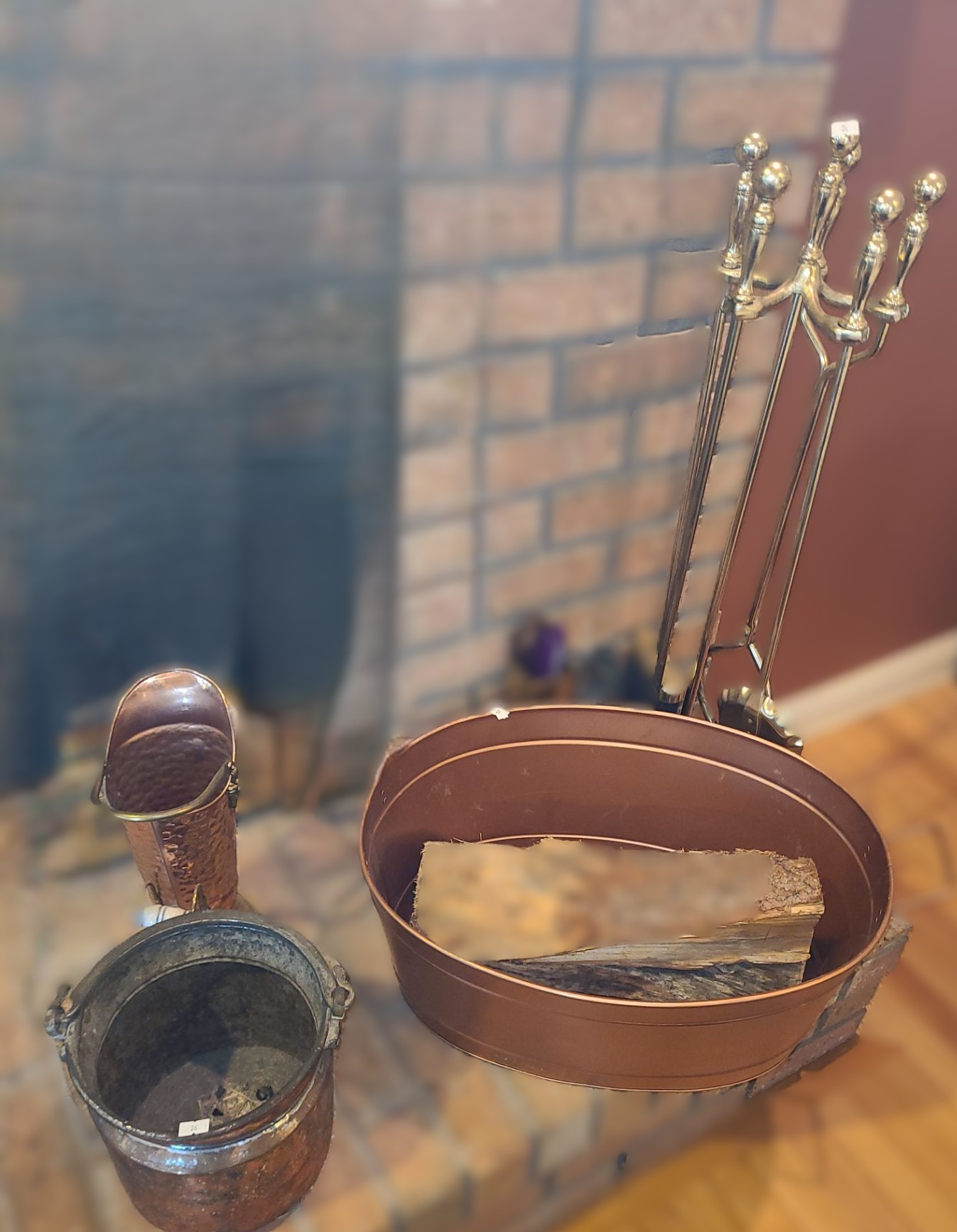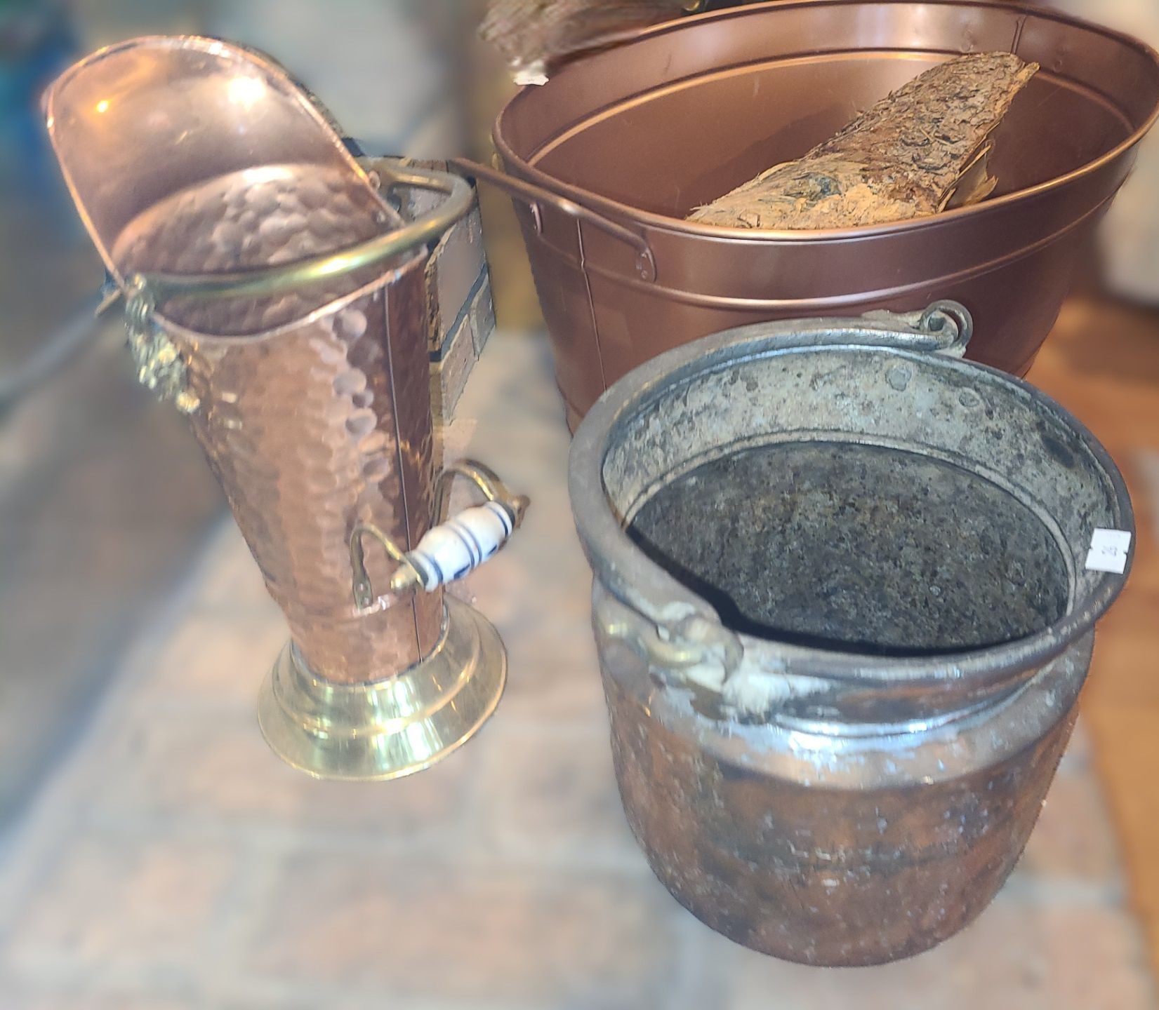 Fireplace Tool Set w/ Stand 32 T, Tall Match Pail 13 T, 25 W, Firewood Bucket 15.5 D, 9 T, Pail